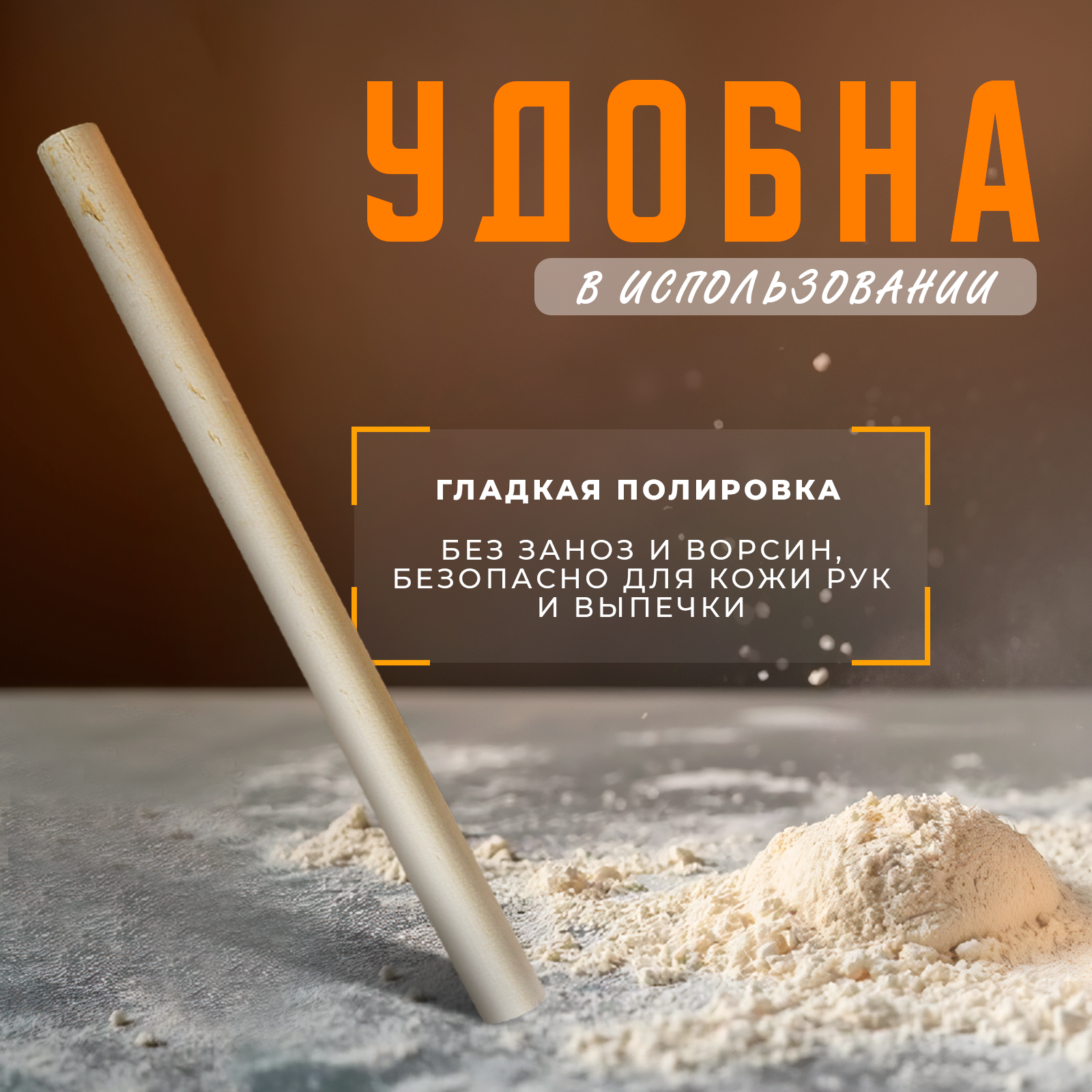 Скалка прямая Доляна, 50×3 см, берёза интересное: