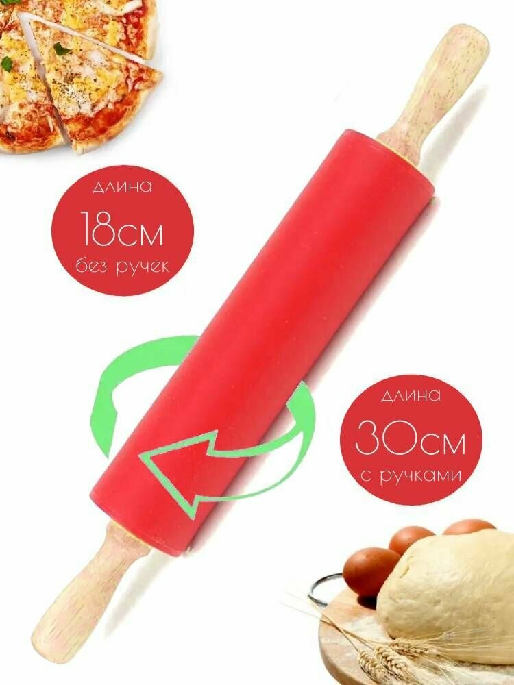 Скалка силиконовая с деревянными ручками, 18 см., красный интересное: