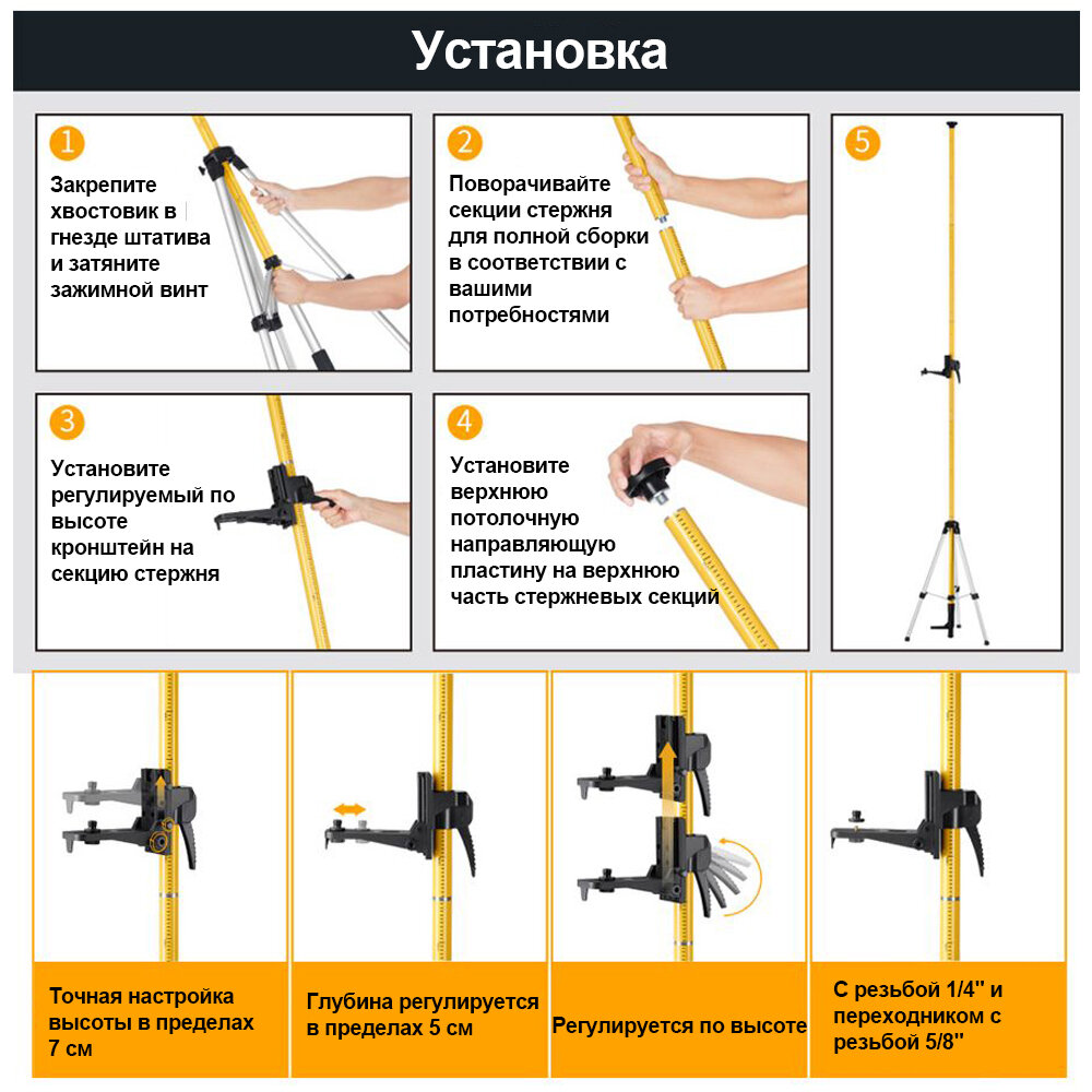 Распорная телескопическая штанга для лазерного уровня до 3.7м высотой FIRECORE интересное: