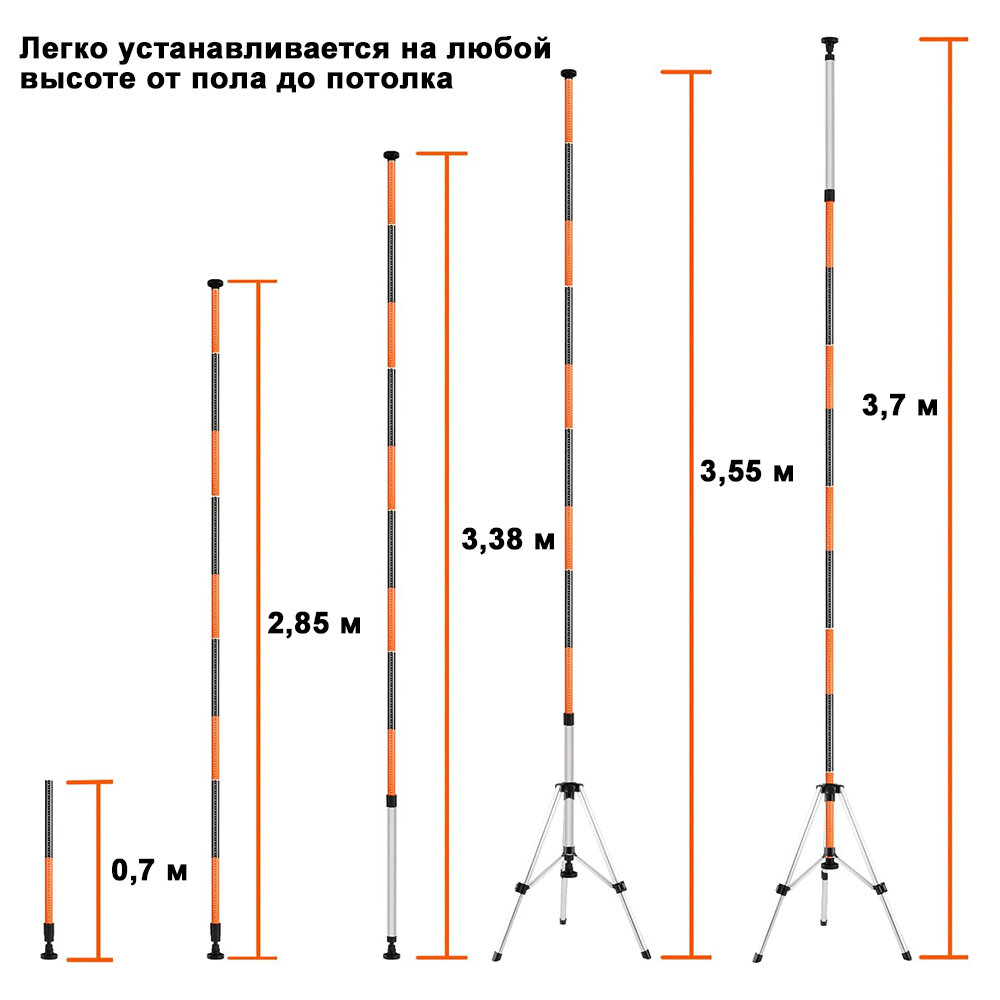 Распорная телескопическая штанга для лазерного уровня до 3.7м высотой FIRECORE