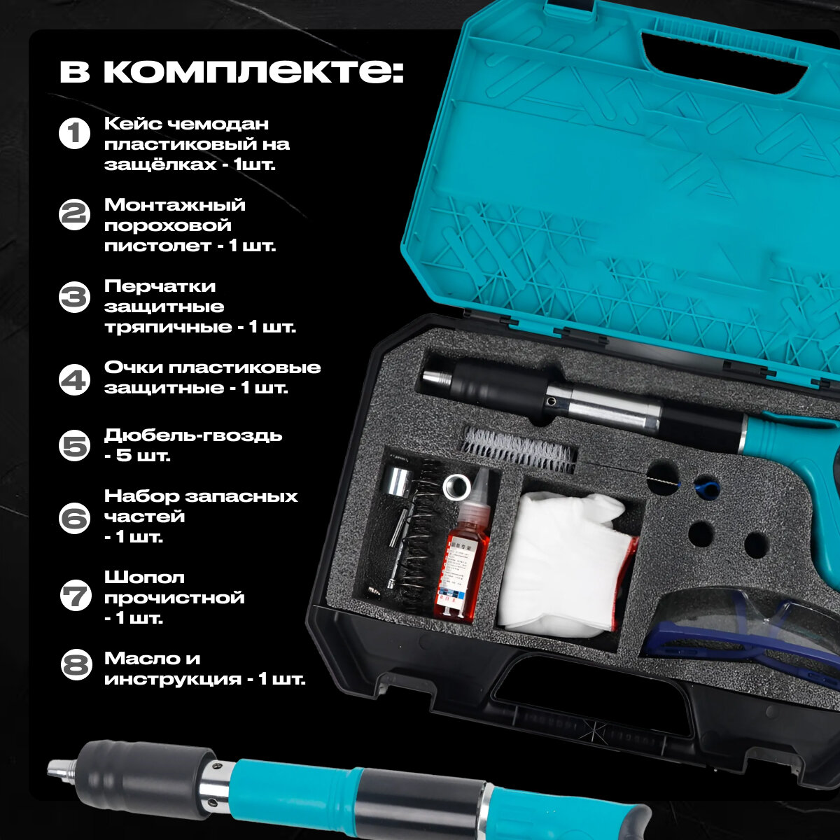 | Комплектация | защитные очки / кейс |