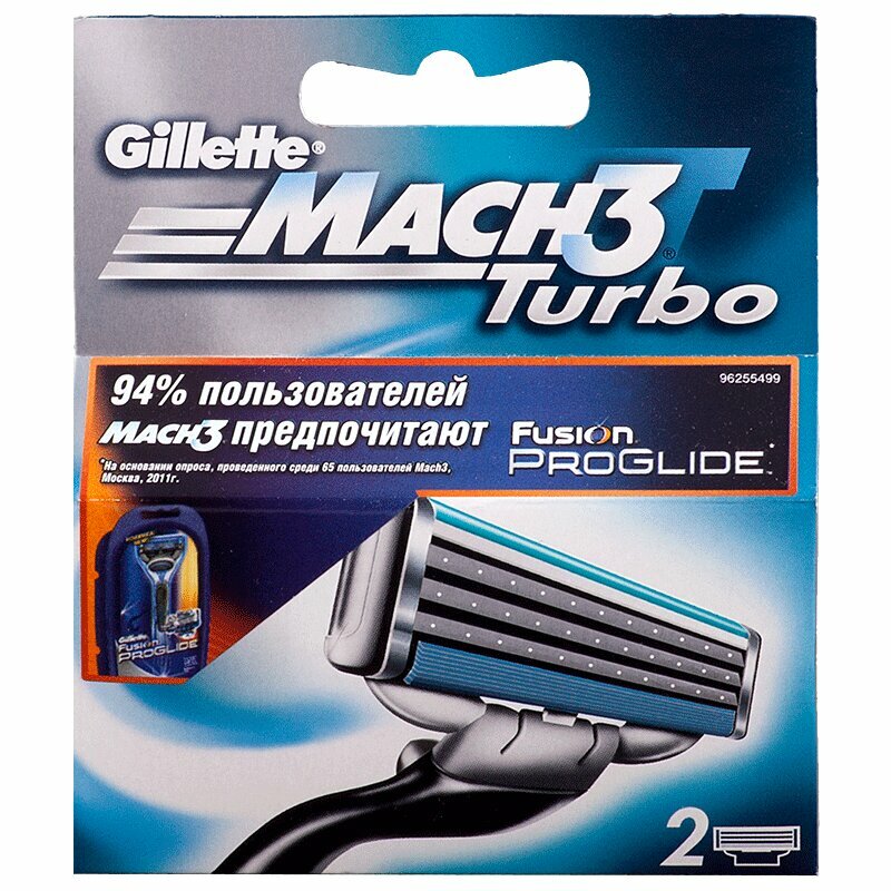 GILLETTE Mach 3 Turbo Сменные кассеты для бритья с 3 лезвиями, мужские, 2 шт