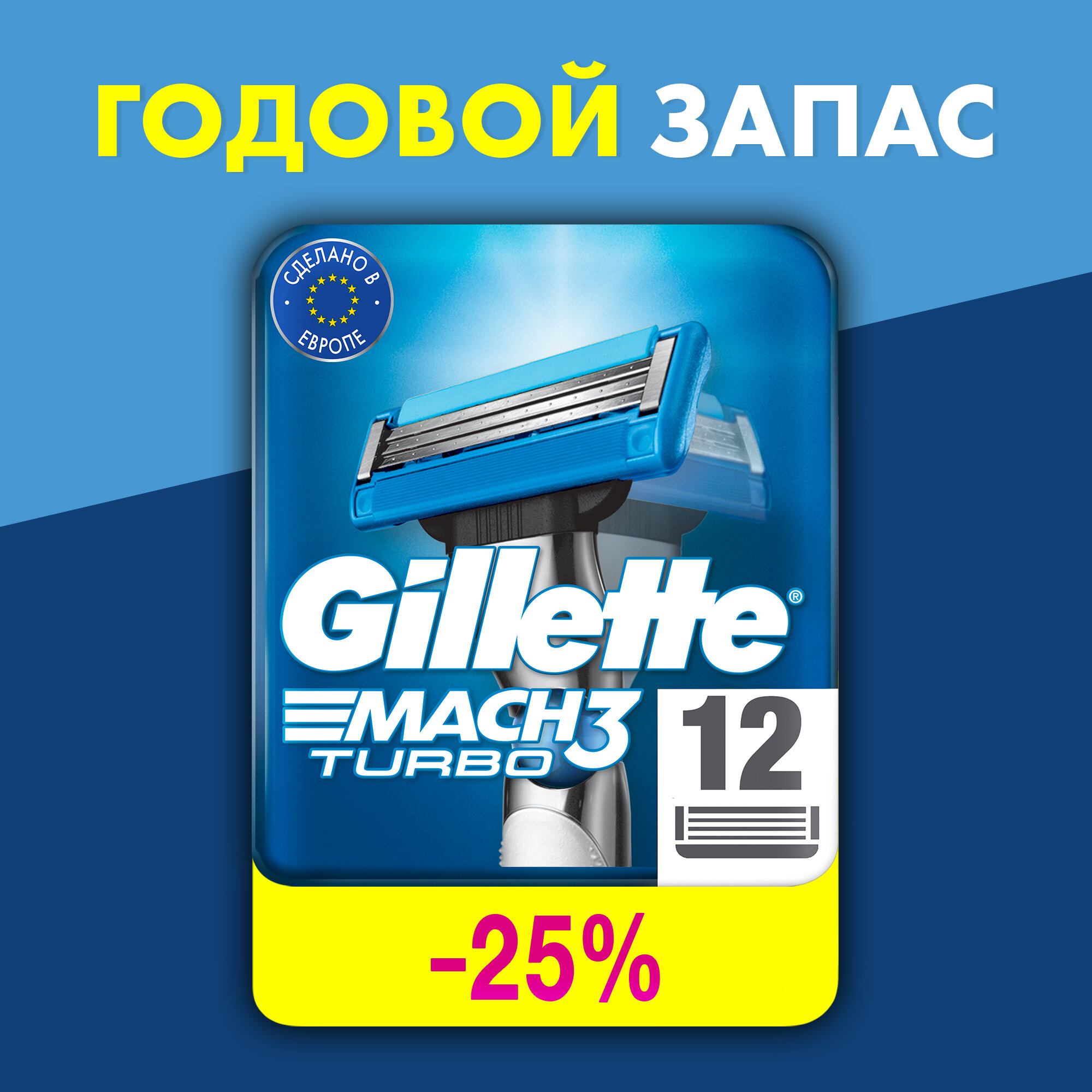 Сменные кассеты для бритья Gillette Mach3 Turbo, 12 шт.
