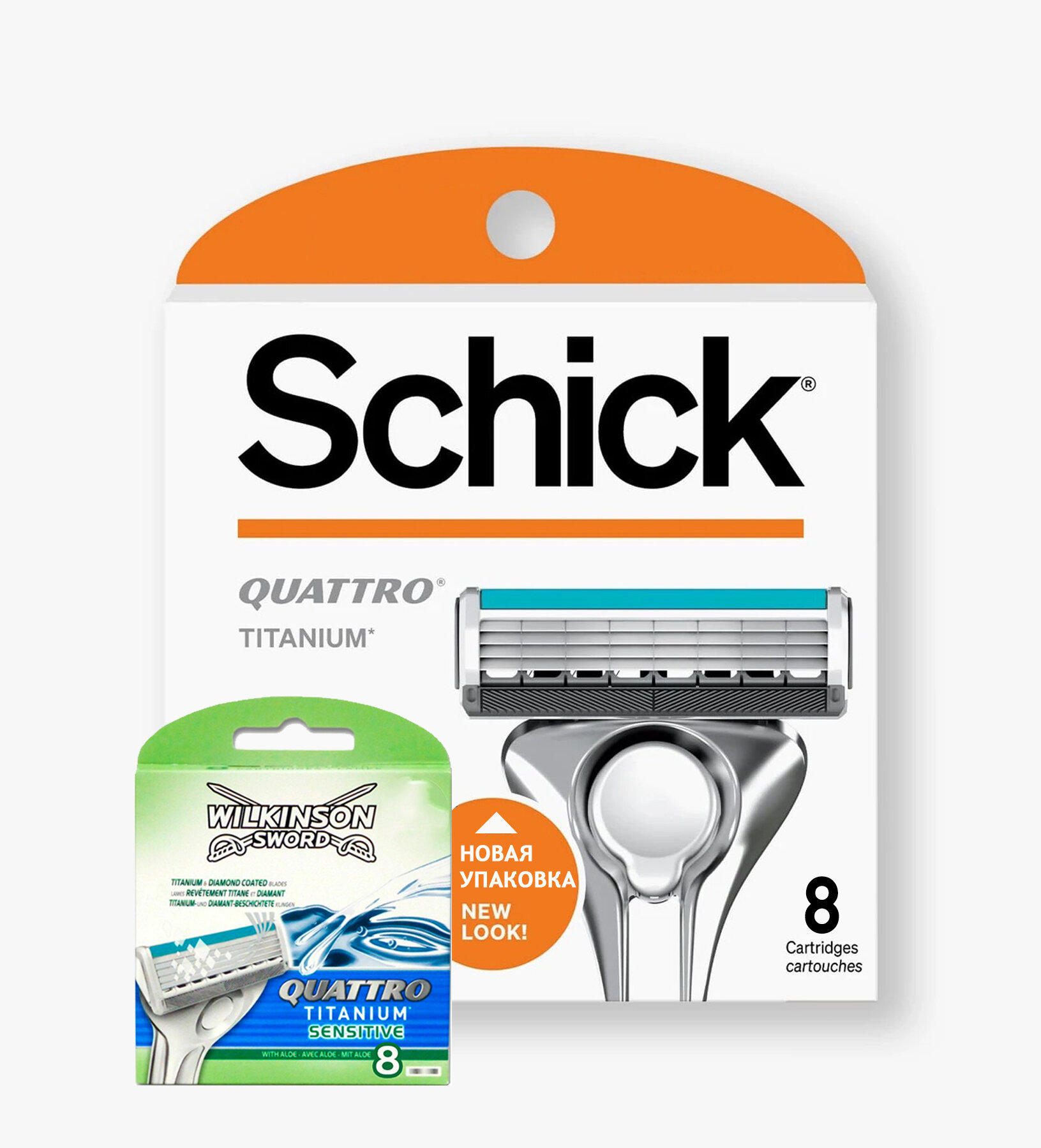 SCHICK / Wilkinson sword QUATTRO Titanium & Diamond, Сменные кассеты 8 шт (Новый дизайн) интересное: