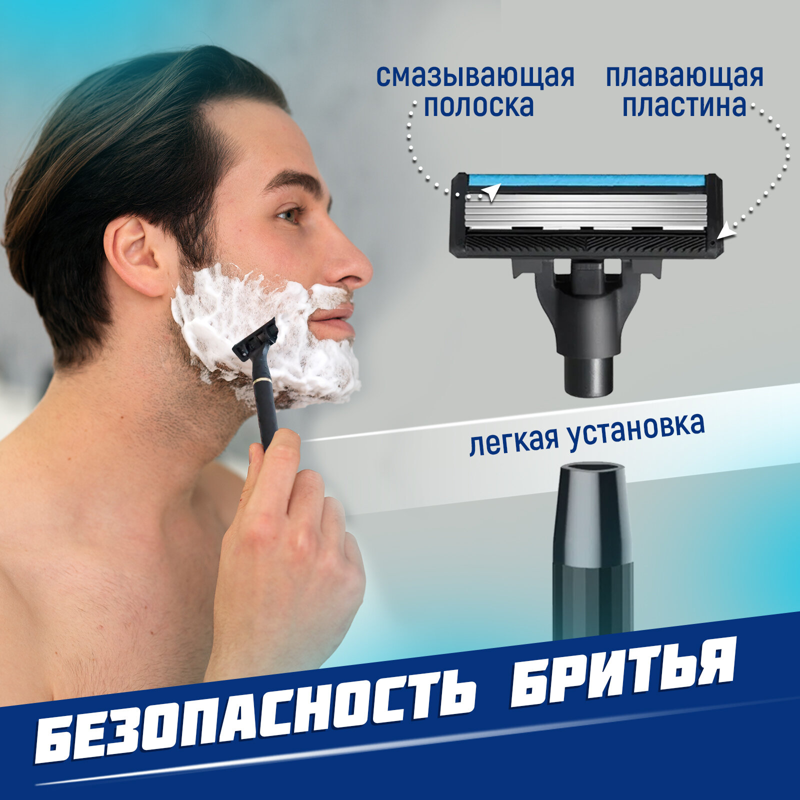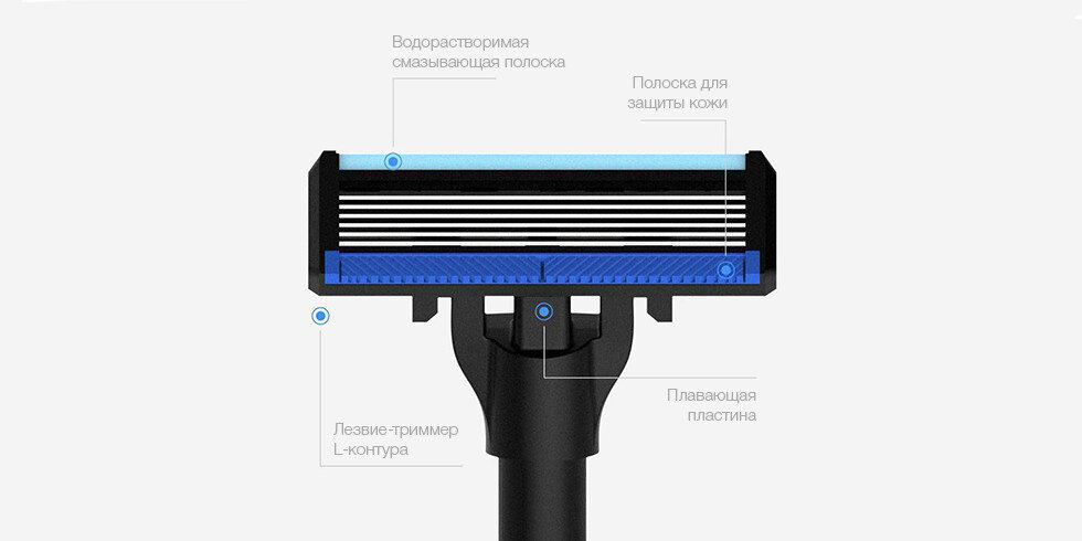| Состав смазывающей полоски | В верхней части бритвенной головки находится смазывающая полоска, которая постепенно растворяется в воде. В ее составе есть экстракт ореха дерева Ши, увлажняющий кожу лица. За счет плавающей пластины лезвие плотно прилегает к коже. Благодаря этому бритье эффективное и безопасное. |