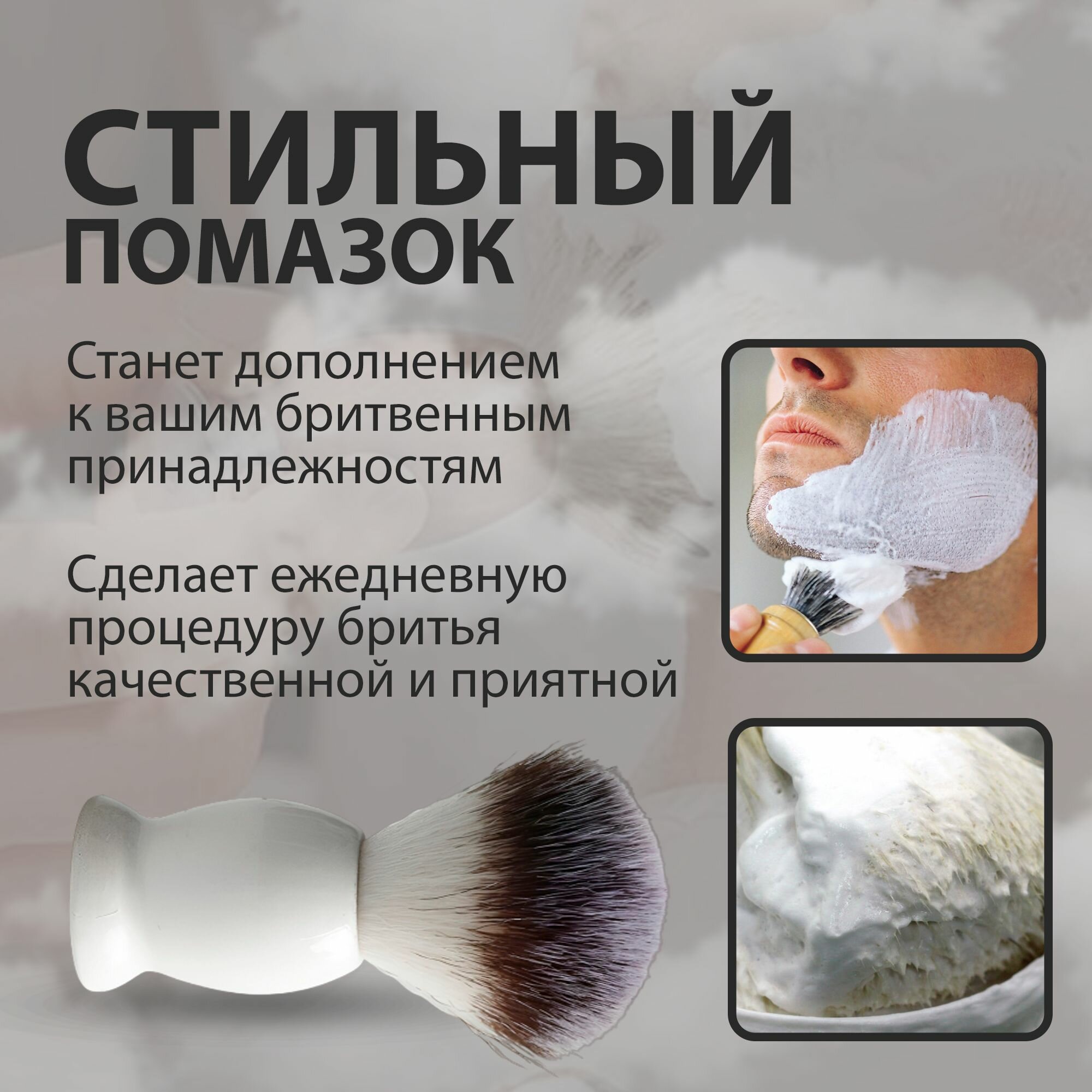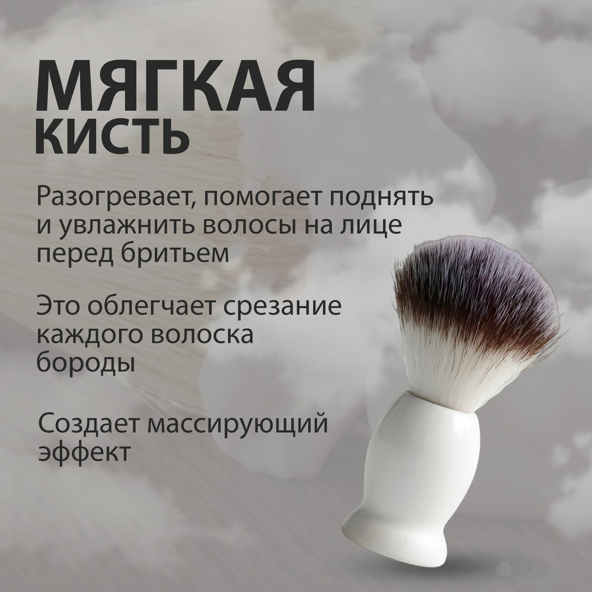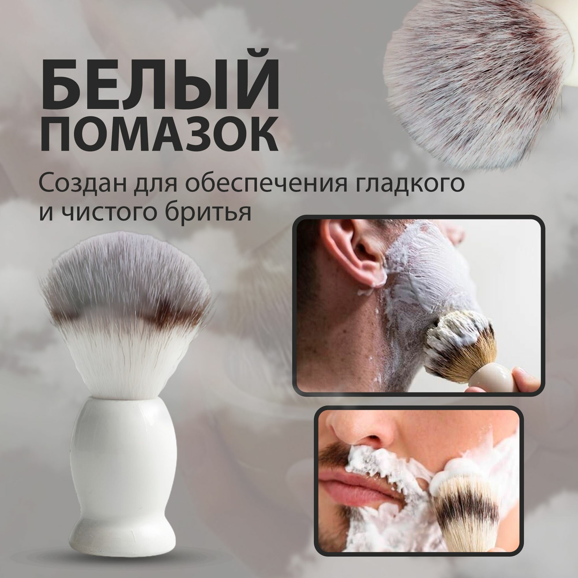 Помазок для бритья бороды мужской, ворс для чувствительной кожи, белый, 1шт интересное: