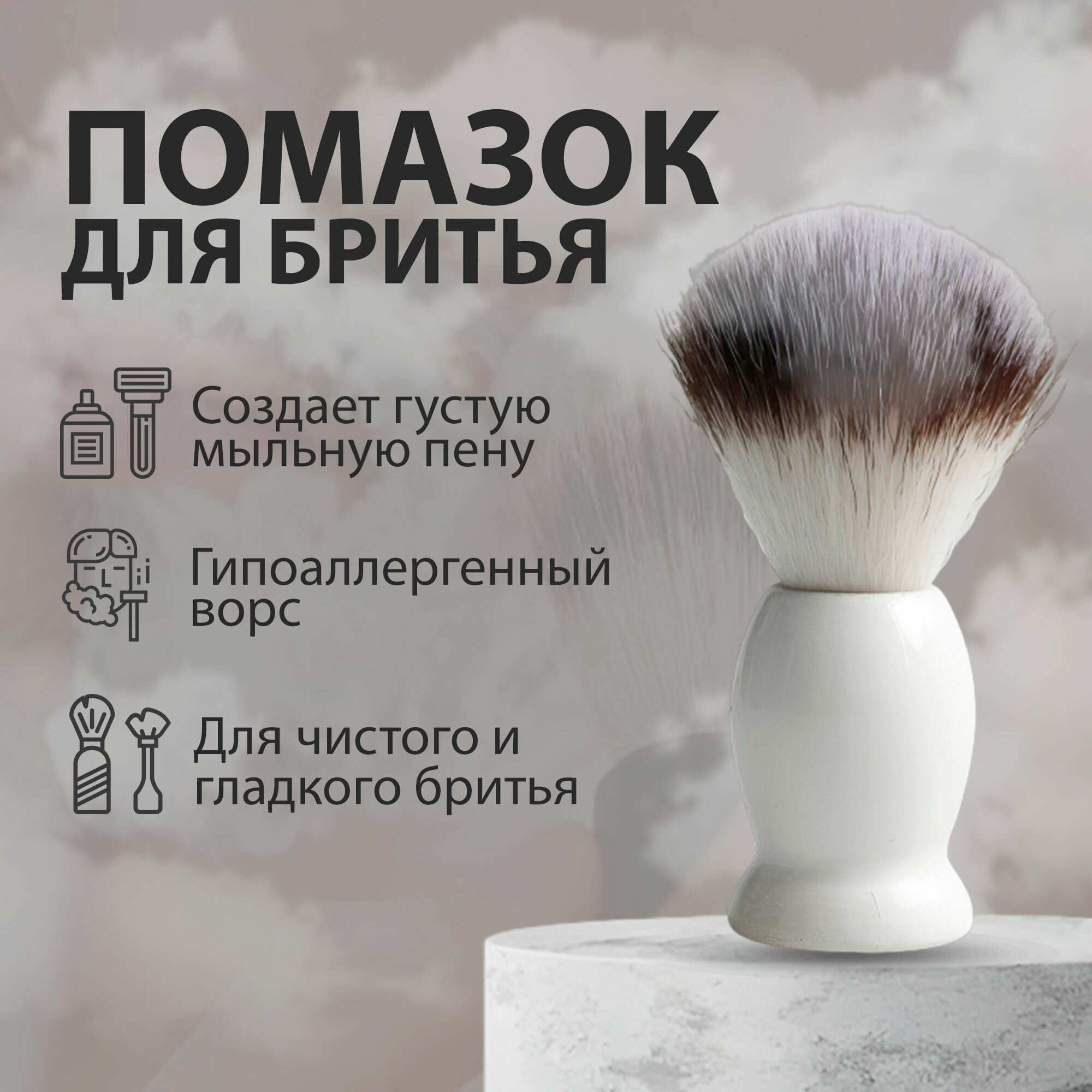 Купить Помазок для бритья бороды мужской, ворс для чувствительной кожи, белый, 1шт