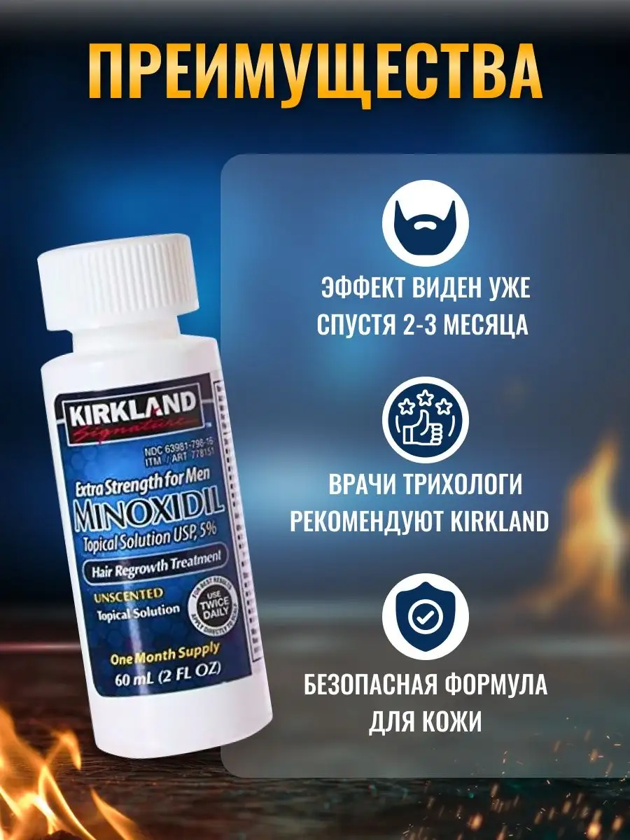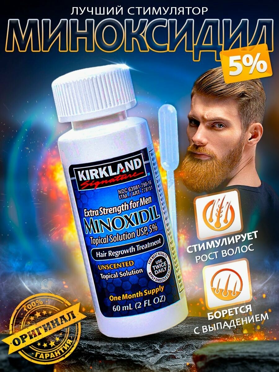 Миноксин для роста волос и бороды, 5%, 60 мл с пипеткой, Kirkland интересное: