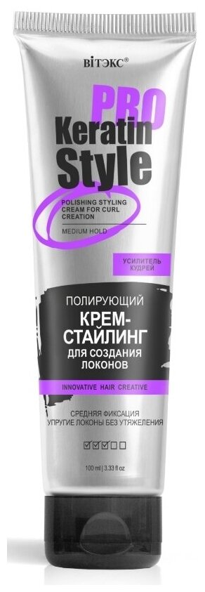 Купить Витэкс KERATIN PRO Style Полирующий крем-стайлинг для создания локонов, средняя фиксация 100 мл