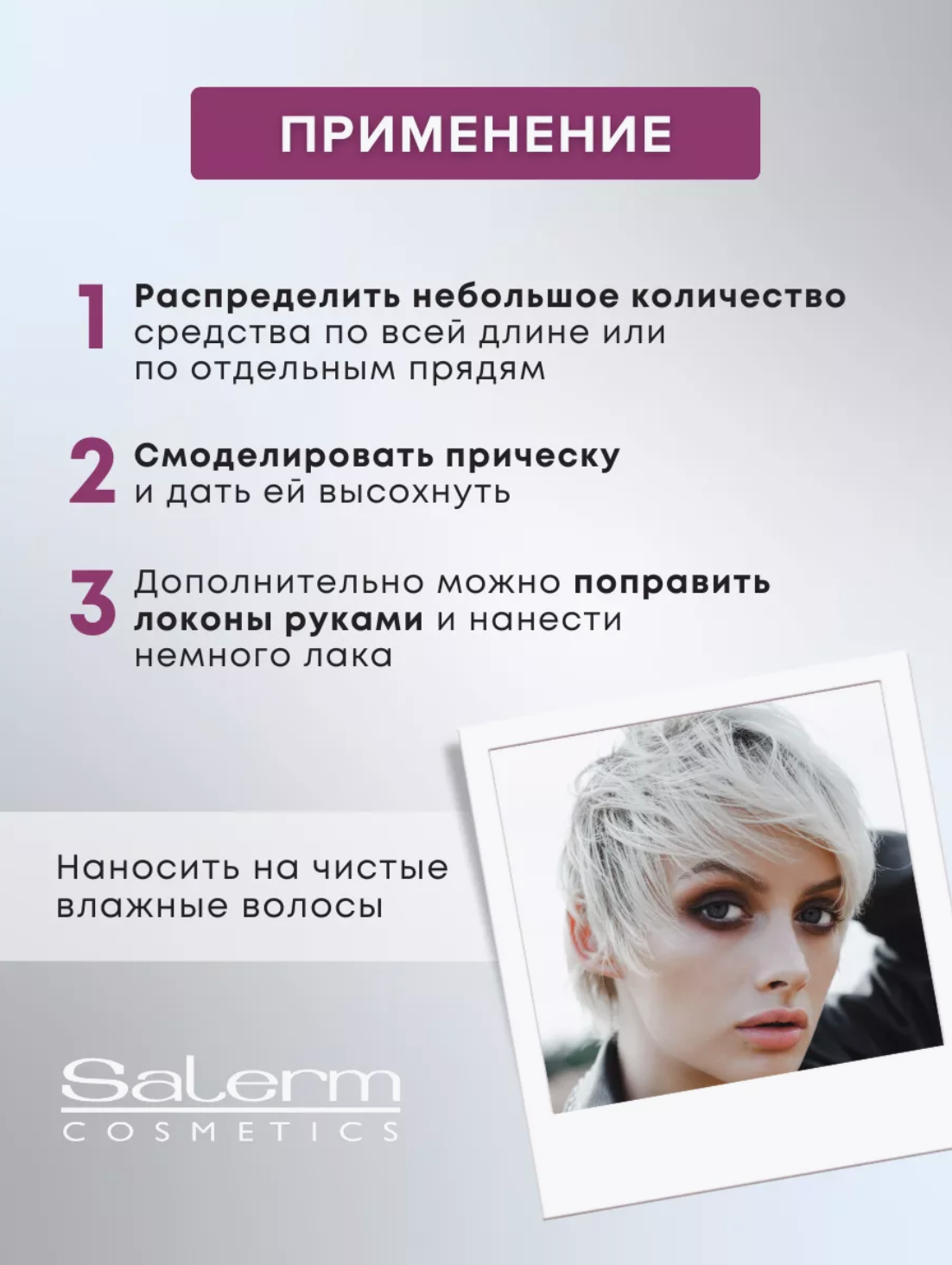 | Эффект | мокрые волосы / создание локонов / текстурирование |