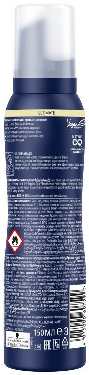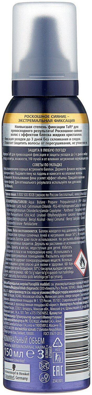 Пена для укладки Taft Ultimate, экстремальная фиксация, 150 мл.