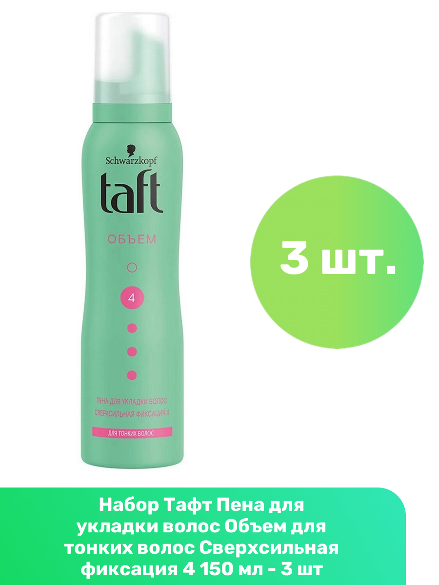 Тафт Пена для укладки волос Объем для тонких волос Сверхсильная фиксация 4 150 мл - 3 шт интересное: