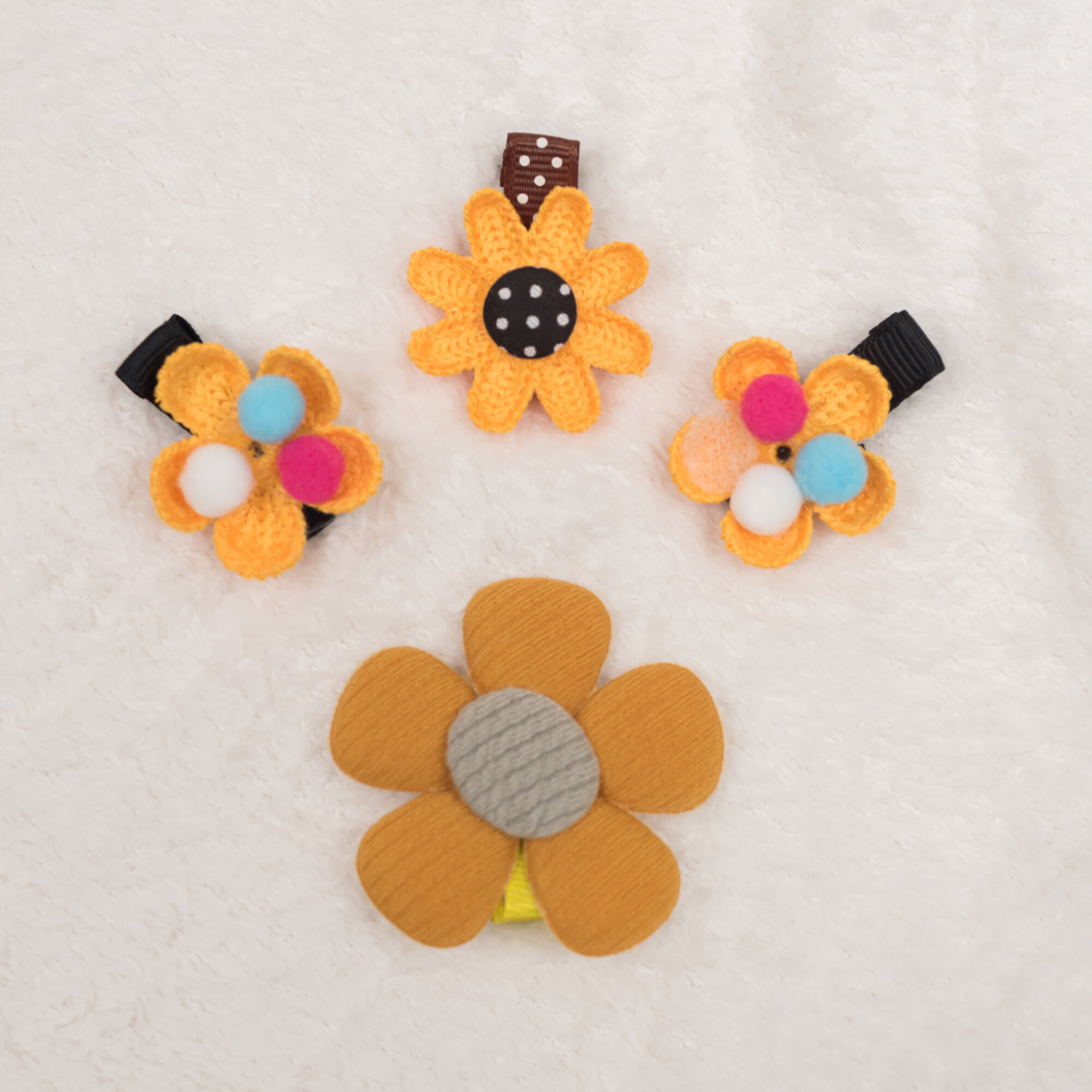 Набор детских заколок Croco Gifts, зажимы из ткани и искусственного меха, 9 шт., желтый, коричневый, оранжевый