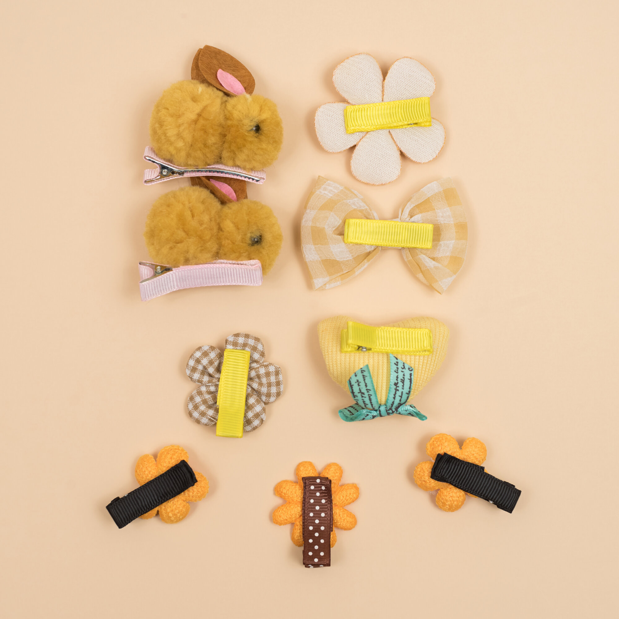 Купить Набор детских заколок Croco Gifts, зажимы из ткани и искусственного меха, 9 шт., желтый, оранжевый, бежевый