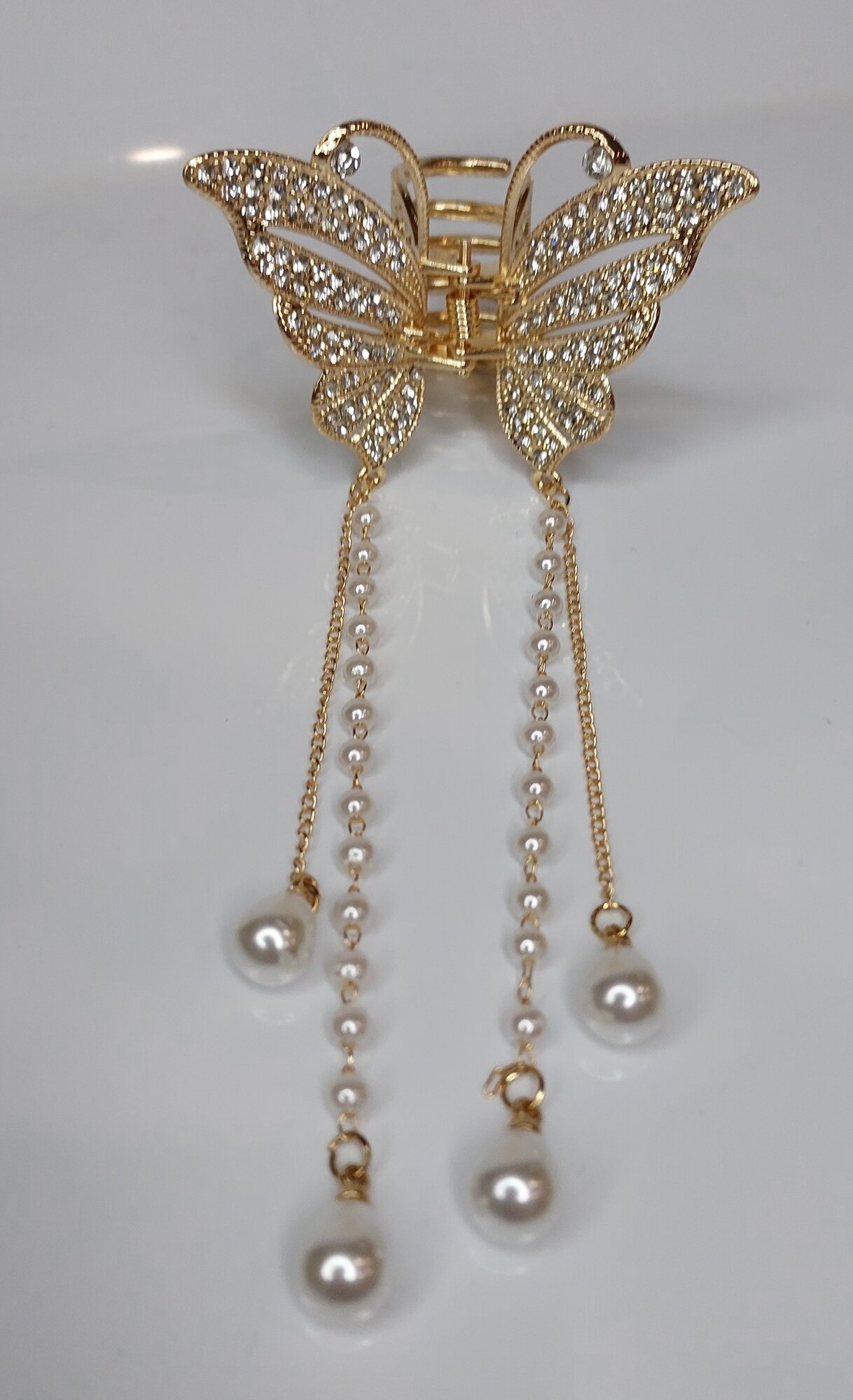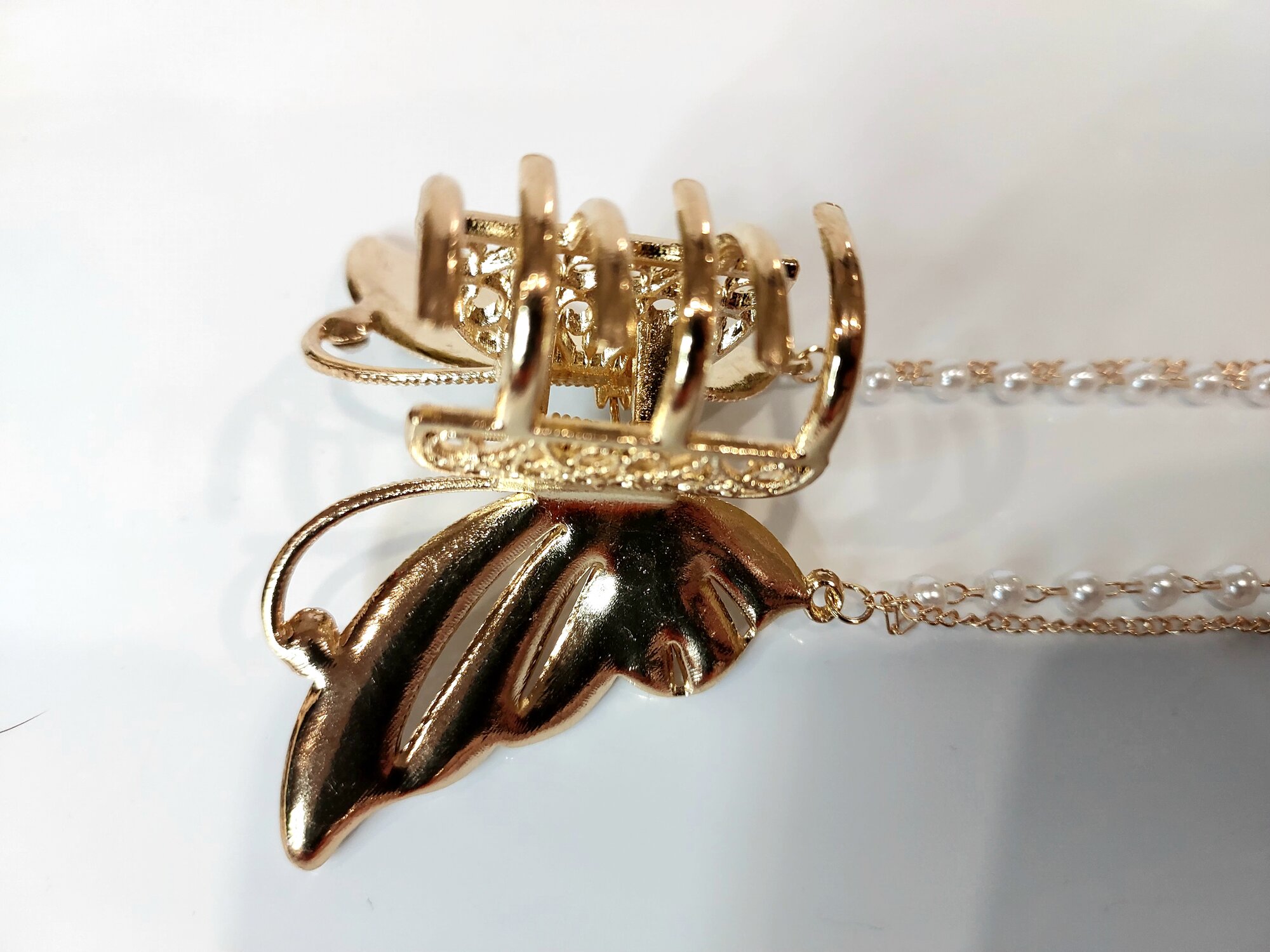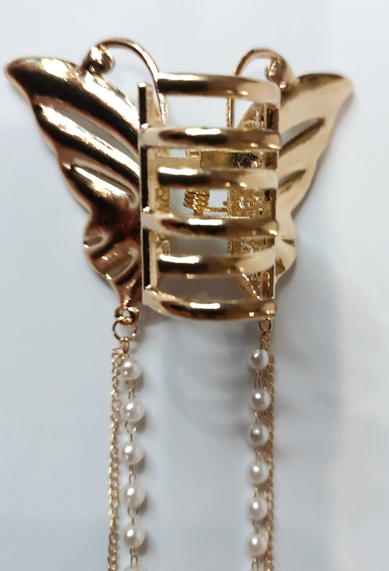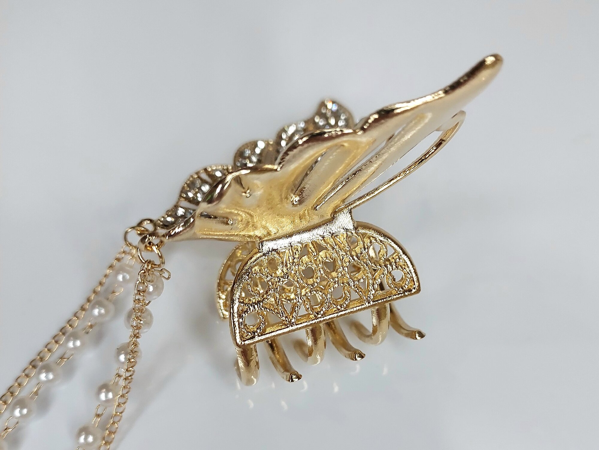Купить Новинка 2023! Блестящий краб-бабочка для волос с кисточками из жемчужин (имитация). цвет Золото