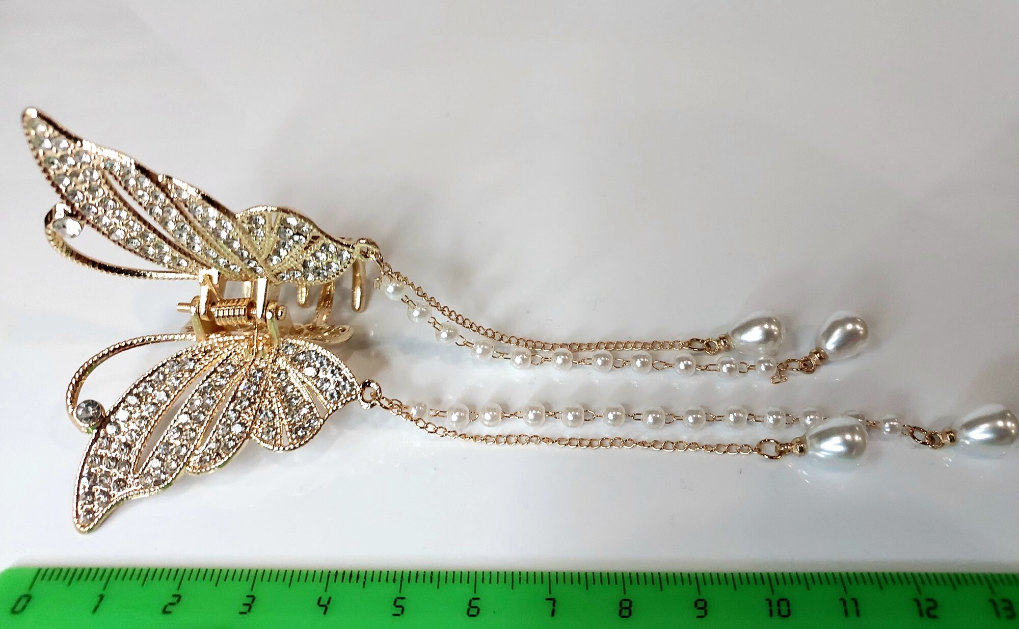 СохранитьНовинка 2023! Блестящий краб-бабочка для волос с кисточками из жемчужин (имитация). цвет Золото интересное: