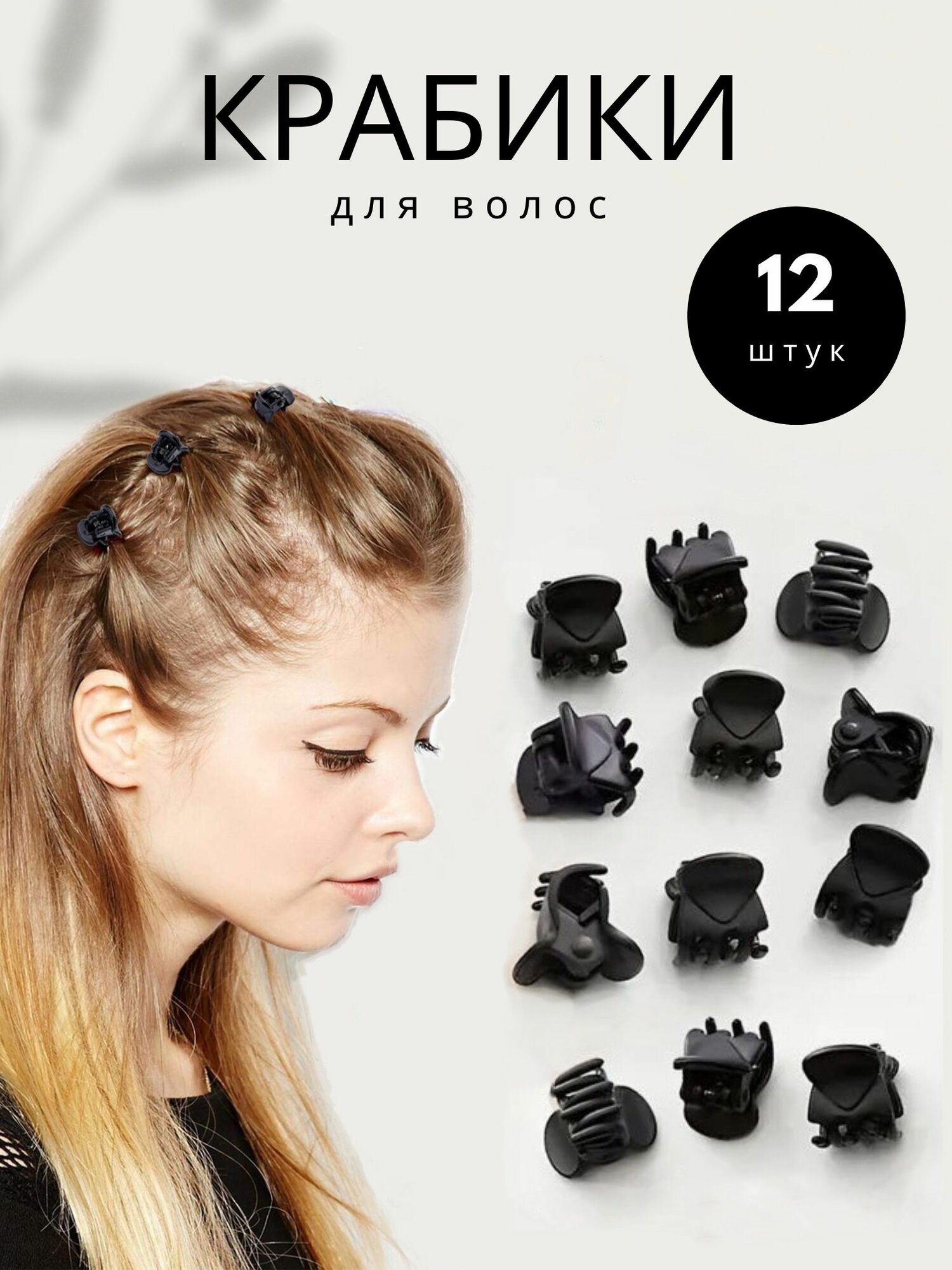 Крабики для волос пластиковые маленькие 15 мм зубцы 12 шт черный интересное: