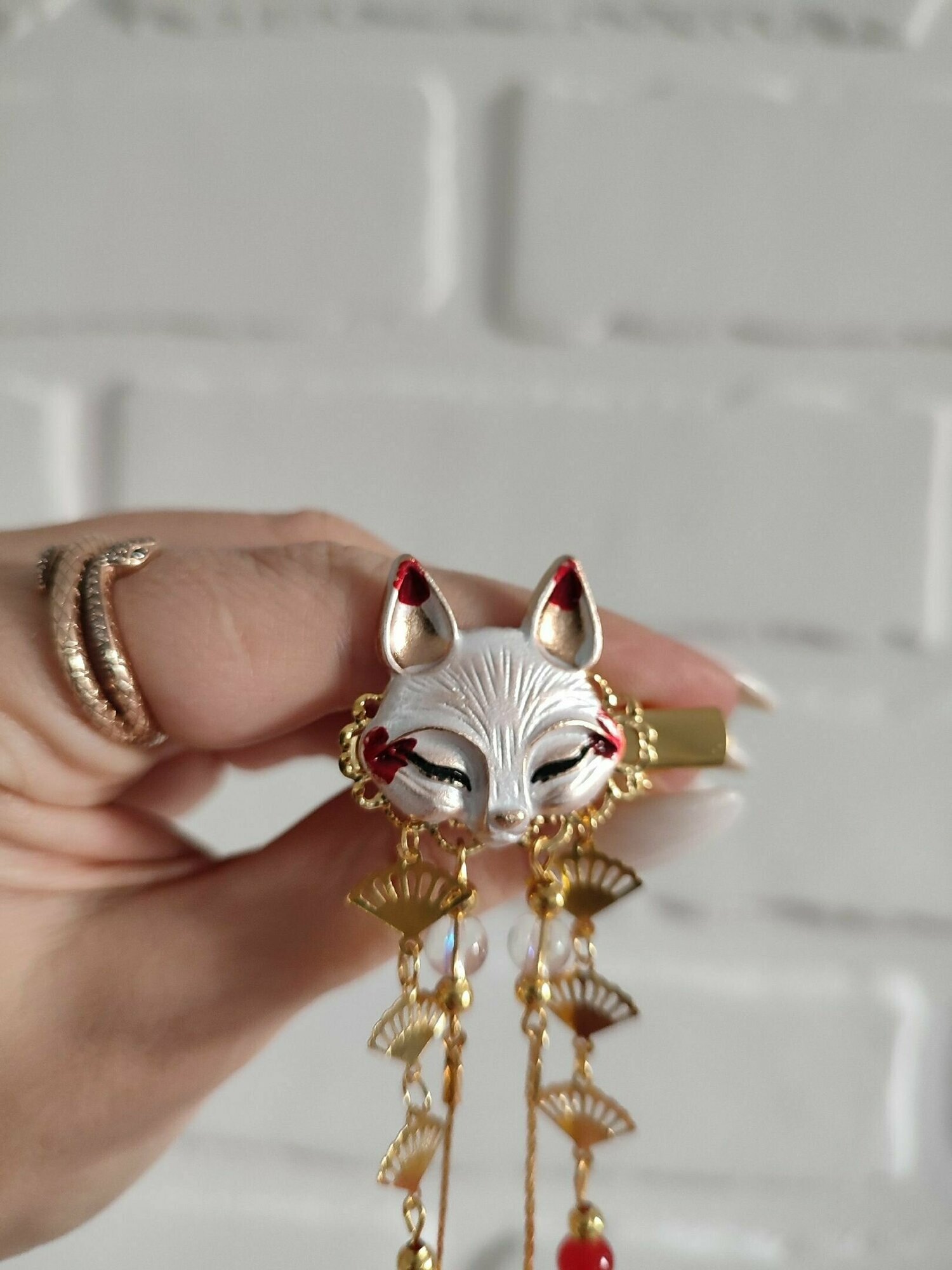 Купить Японская заколка - зажим с Маской лисы Танджиро Камадо из аниме Клинок, рассекающий демонов