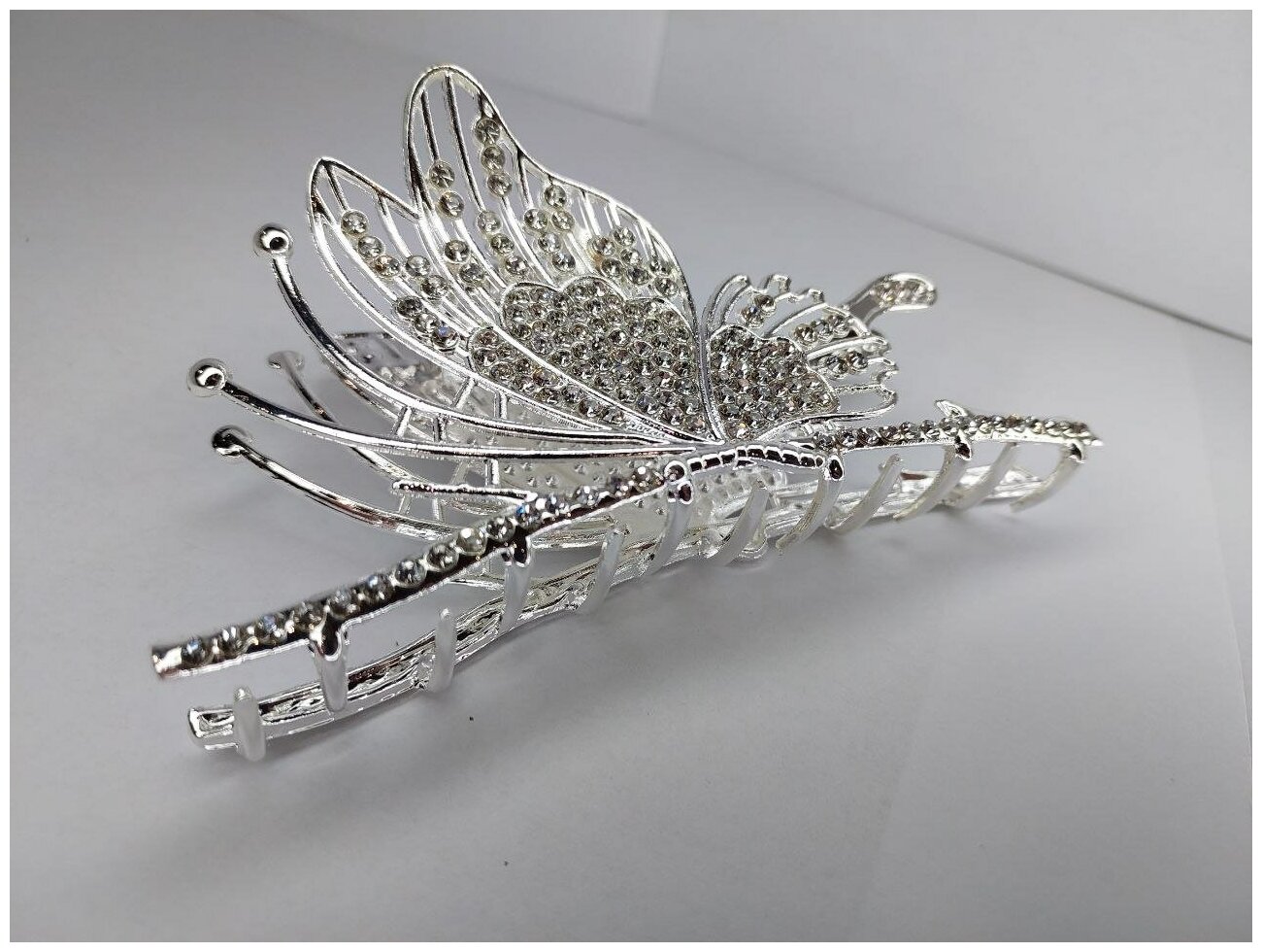 Купить Заколка-краб "Бабочка" со стразами. Серебро. Усиленная.