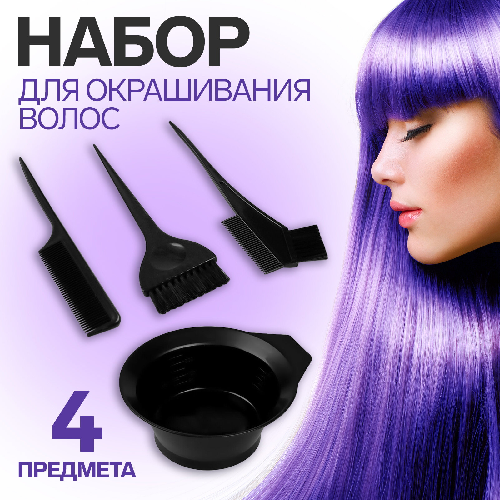 Набор для окрашивания, 4 предмета, цвет чёрный