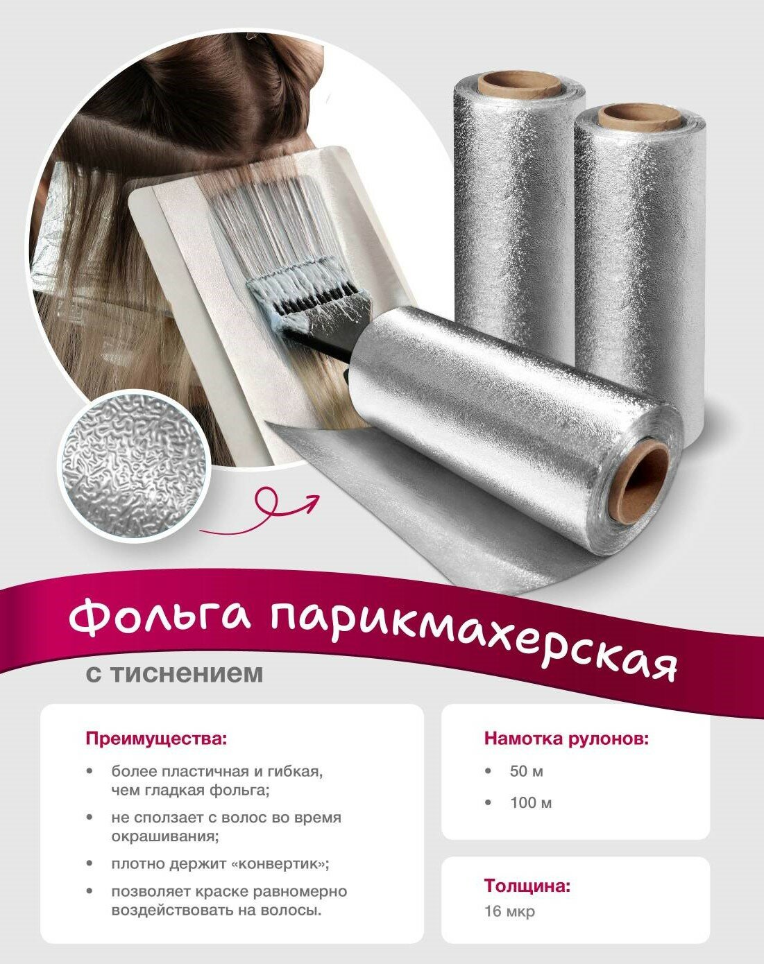 Фольга парикмахерская с тиснением, 100метров в рулоне, 16мкн интересное:
