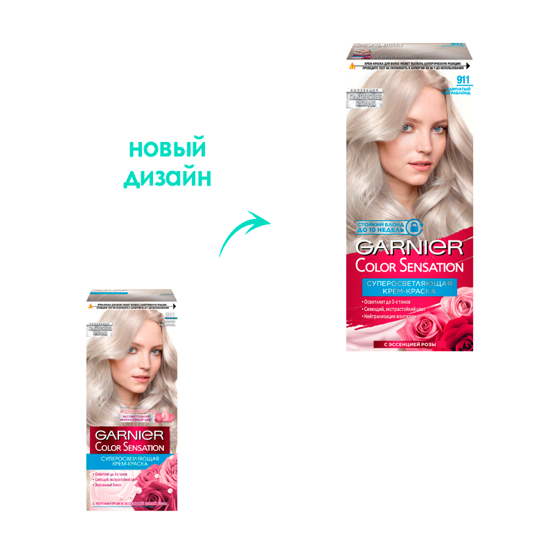 GARNIER Color Sensation Платиновые блонды стойкая крем-краска, 911 дымчатый ультраблонд, 110 мл