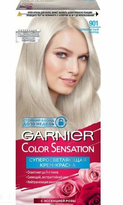 Ниже Вы можете прочитать отзывы на GARNIER Color Sensation Краска для волос 901 Серебристый блонд,набор 2 краски, ознакомится с подробными характеристиками, посмотреть интересные обзоры и фотографии на GARNIER Color Sensation Краска для волос 901 Серебристый блонд,набор 2 краски.