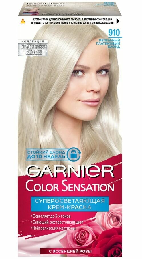 GARNIER Color Sensation Платиновые блонды стойкая крем-краска, 910, Пепельно-платиновый Блонд, 110 мл