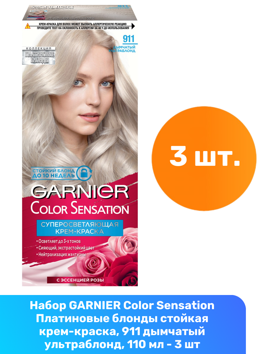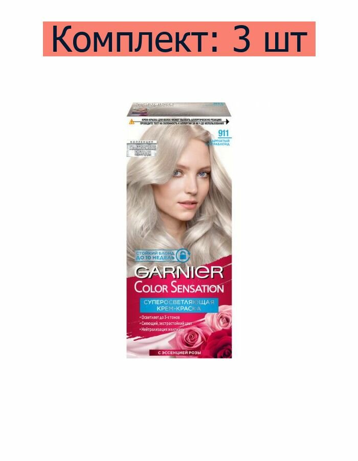Купить GARNIER Color Sensation Платиновые блонды стойкая крем-краска, 911 дымчатый ультраблонд, 110 мл - 3 шт