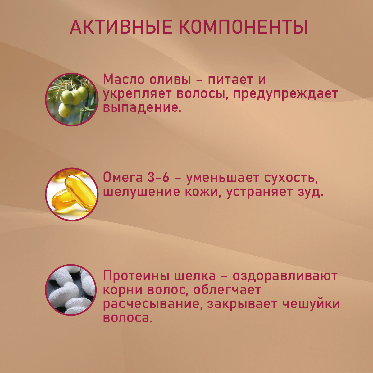 | Особенности | без минеральных масел, без парабенов, без резорцина, без силиконов, защита во время окрашивания, не тестируется на животных |