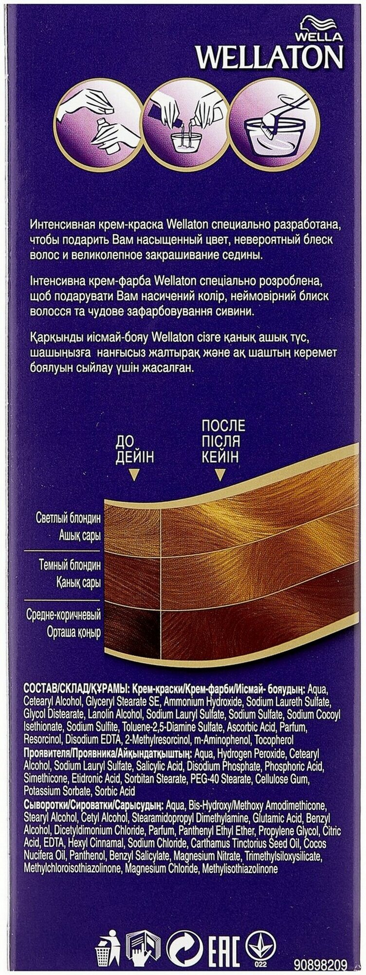 Wella Крем-Краска для волос стойкая Wellaton, 8/03 Ясень