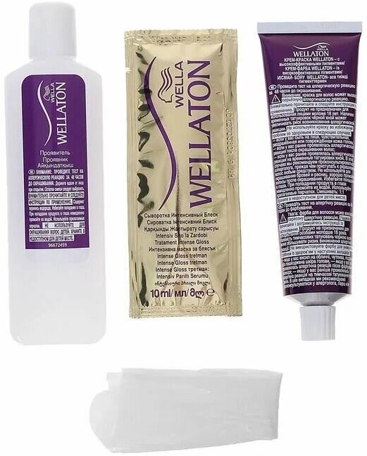 | Комплектация | краситель - 50 мл, проявитель - 50 мл, сыворотка (кондиционер) - 10 мл, пара перчаток, инструкция по применению |