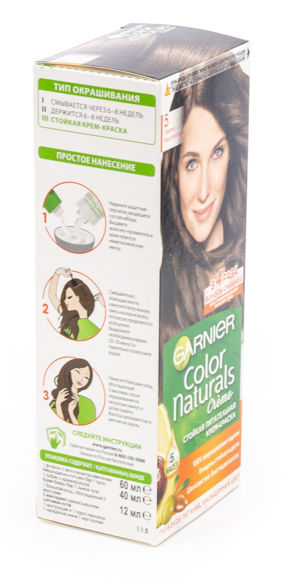 Купить Garnier Color Naturals Cтойкая питательная крем-краска для волос 5 Светло-каштановый.