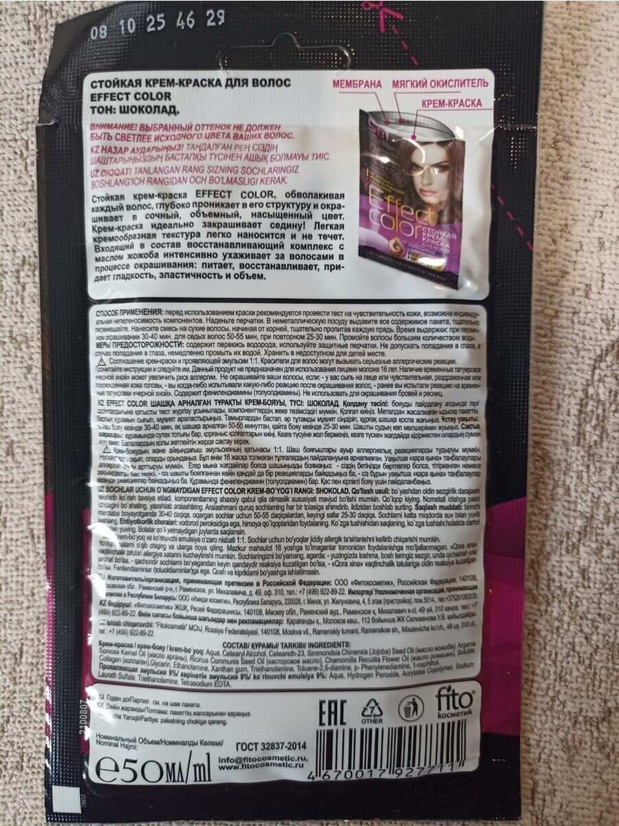 Купить Cтойкая крем-краска для волос Effect Сolor тон шоколад, 50 мл, 2 штуки