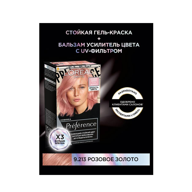СохранитьL'Oréal Paris Стойкая гель-краска для волос Préférence Яркость Цвета, оттенок Розовое Золото 9.213, Мелроуз интересное: