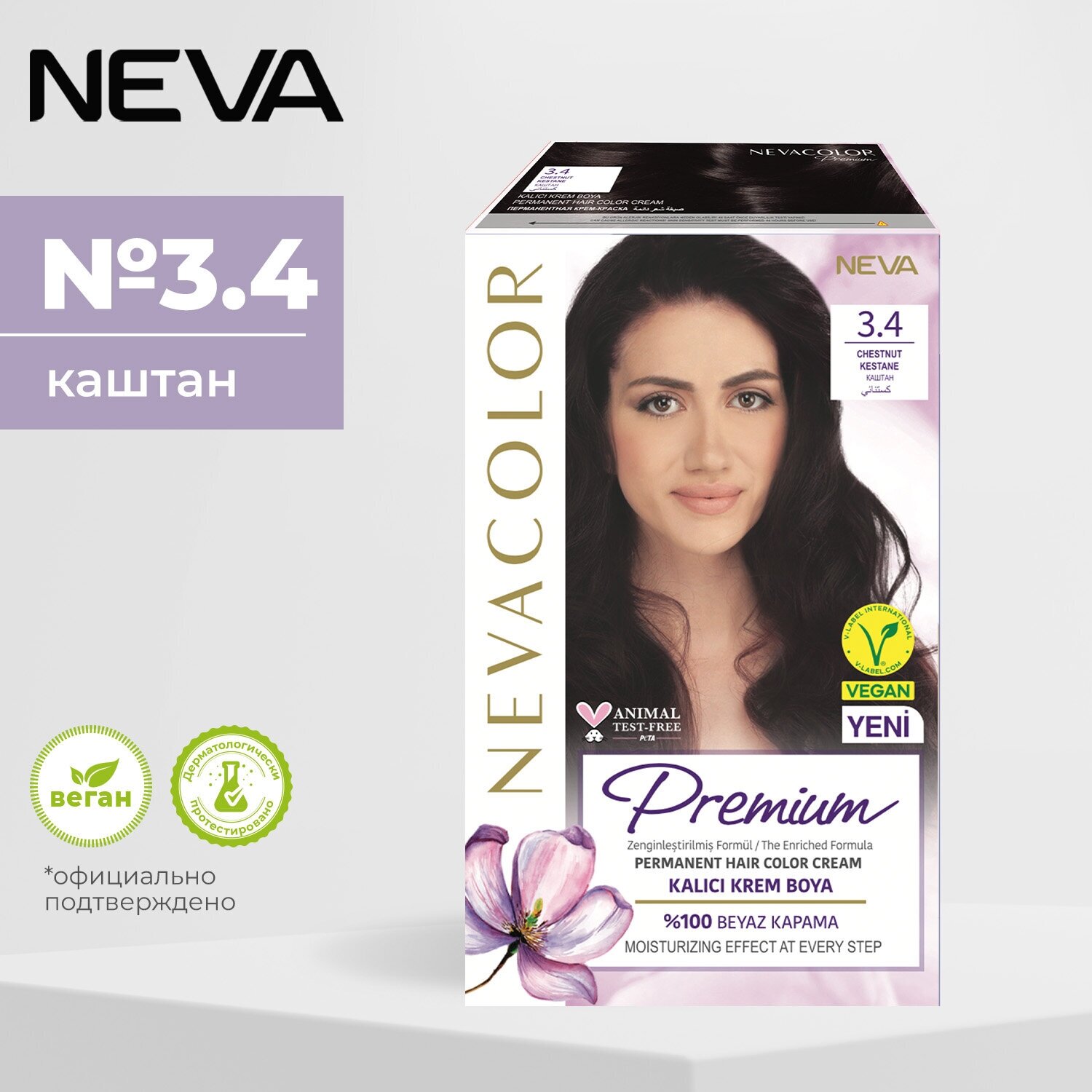 Крем-краска для волос Neva "Premium", стойкая, тон 3.4, Chestnut