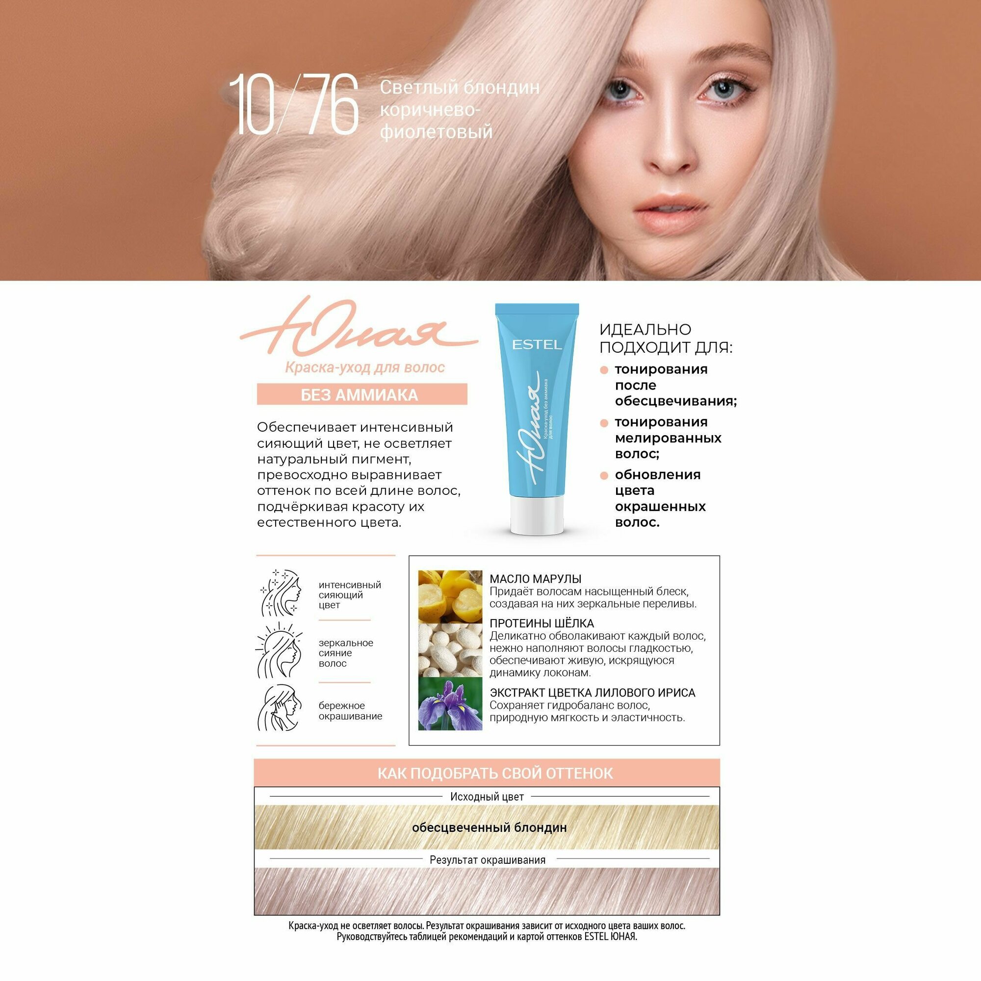 - Краска-уход Estel юная без аммиака для волос 10/76 светлый блондин/коричнево-фиолетовый