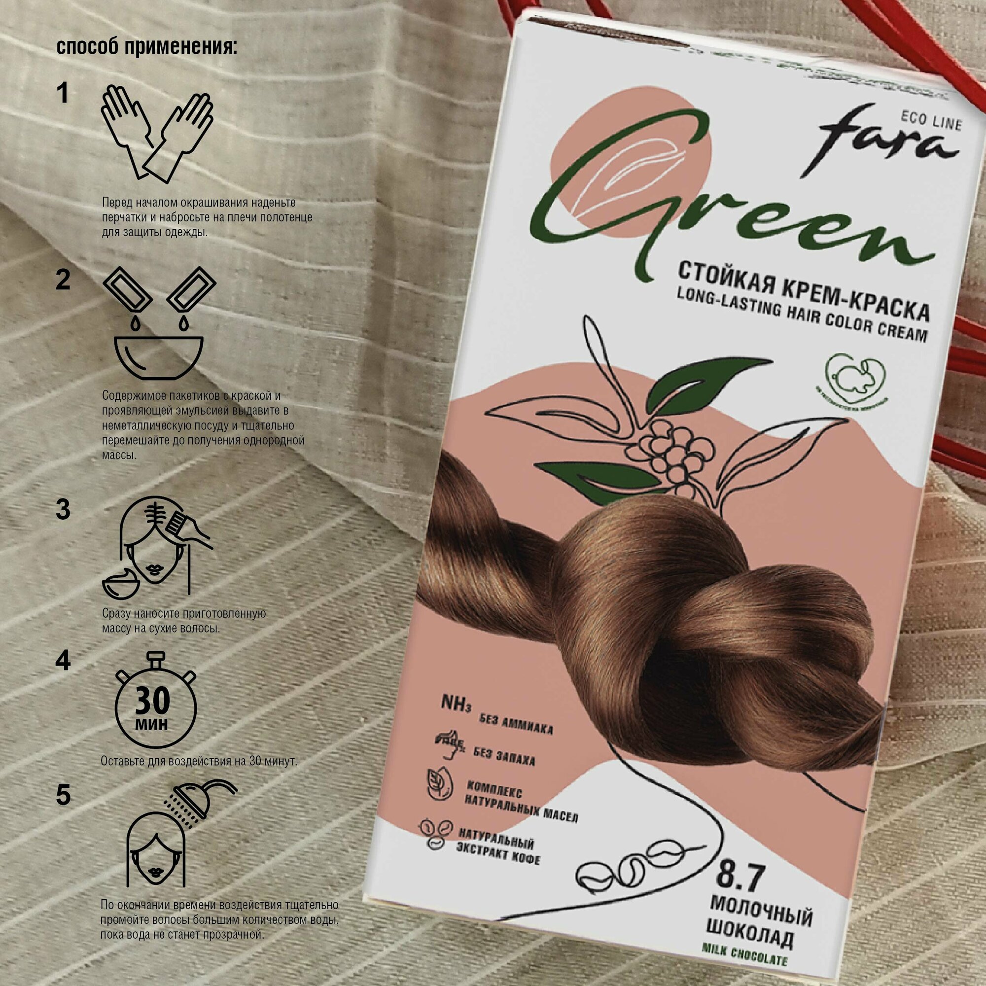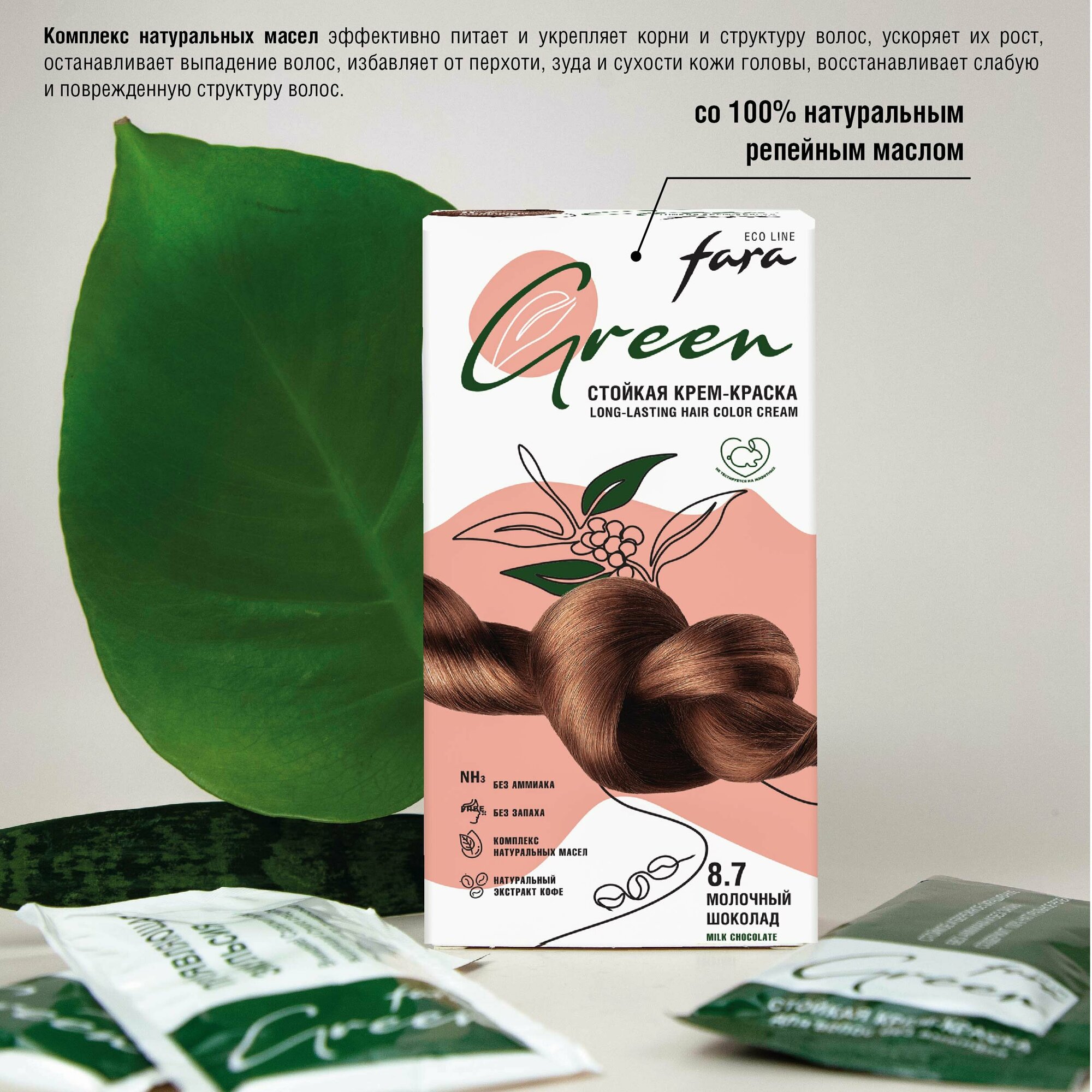Купить Стойкая крем-краска для волос Fara Eco Line Green 8.7 – молочный шоколад