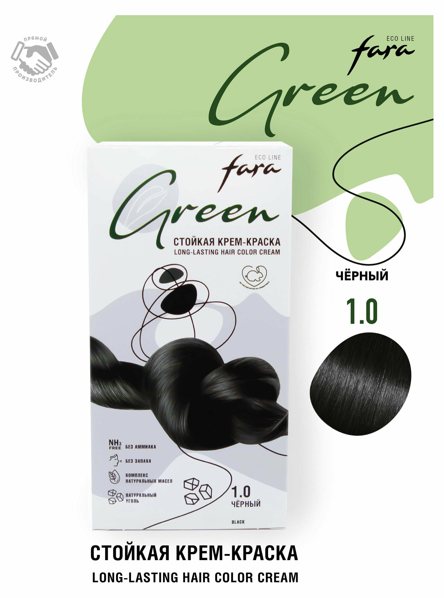 Стойкая крем-краска для волос Fara Eco Line Green 1.0 – черный