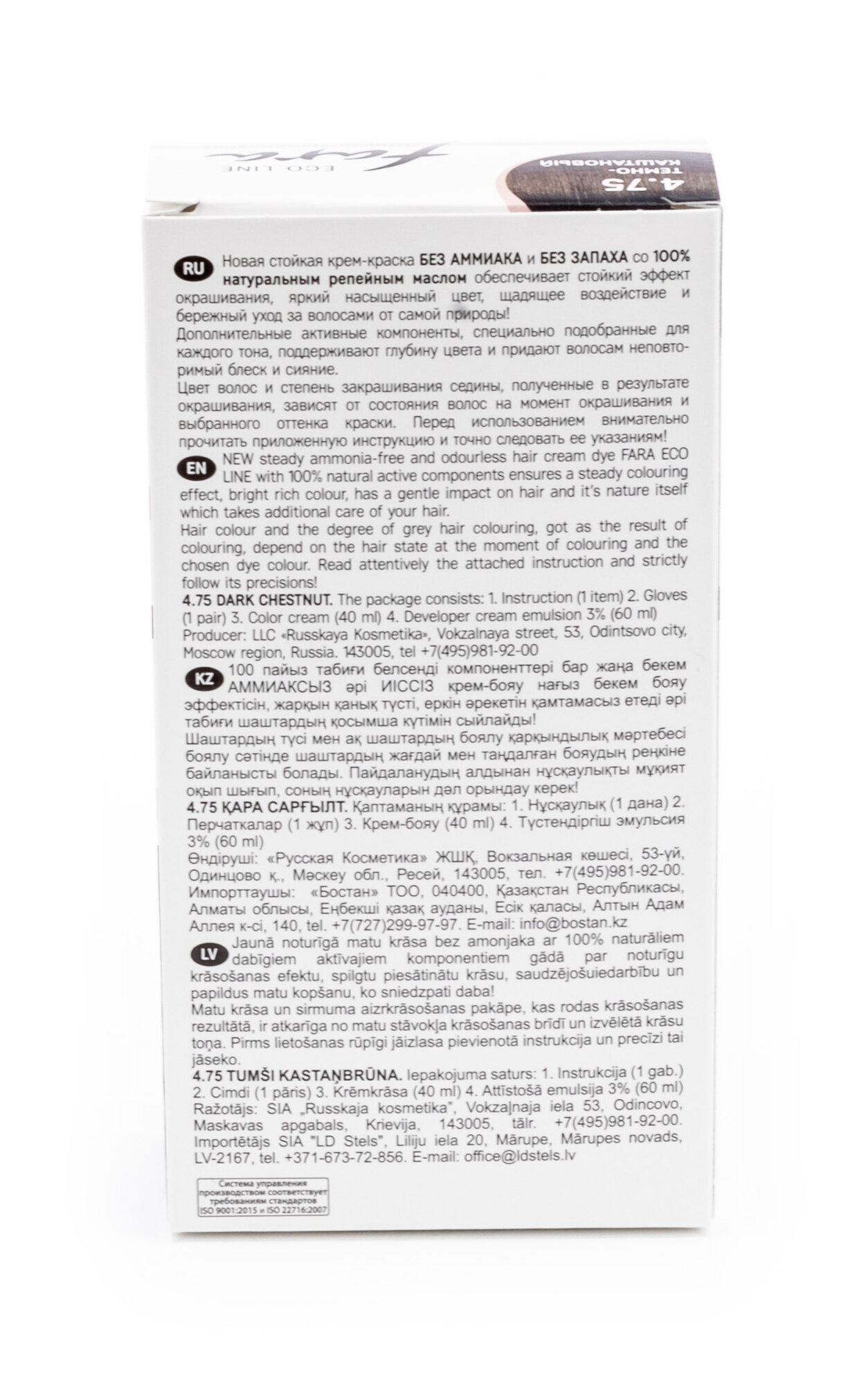 Купить Краска для волос Fara "Eco Line", тон 4,75, Темно-каштановый