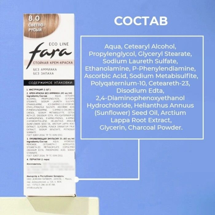 Купить Краска для волос Fara "Eco Line", тон 8,0, Светло-русый