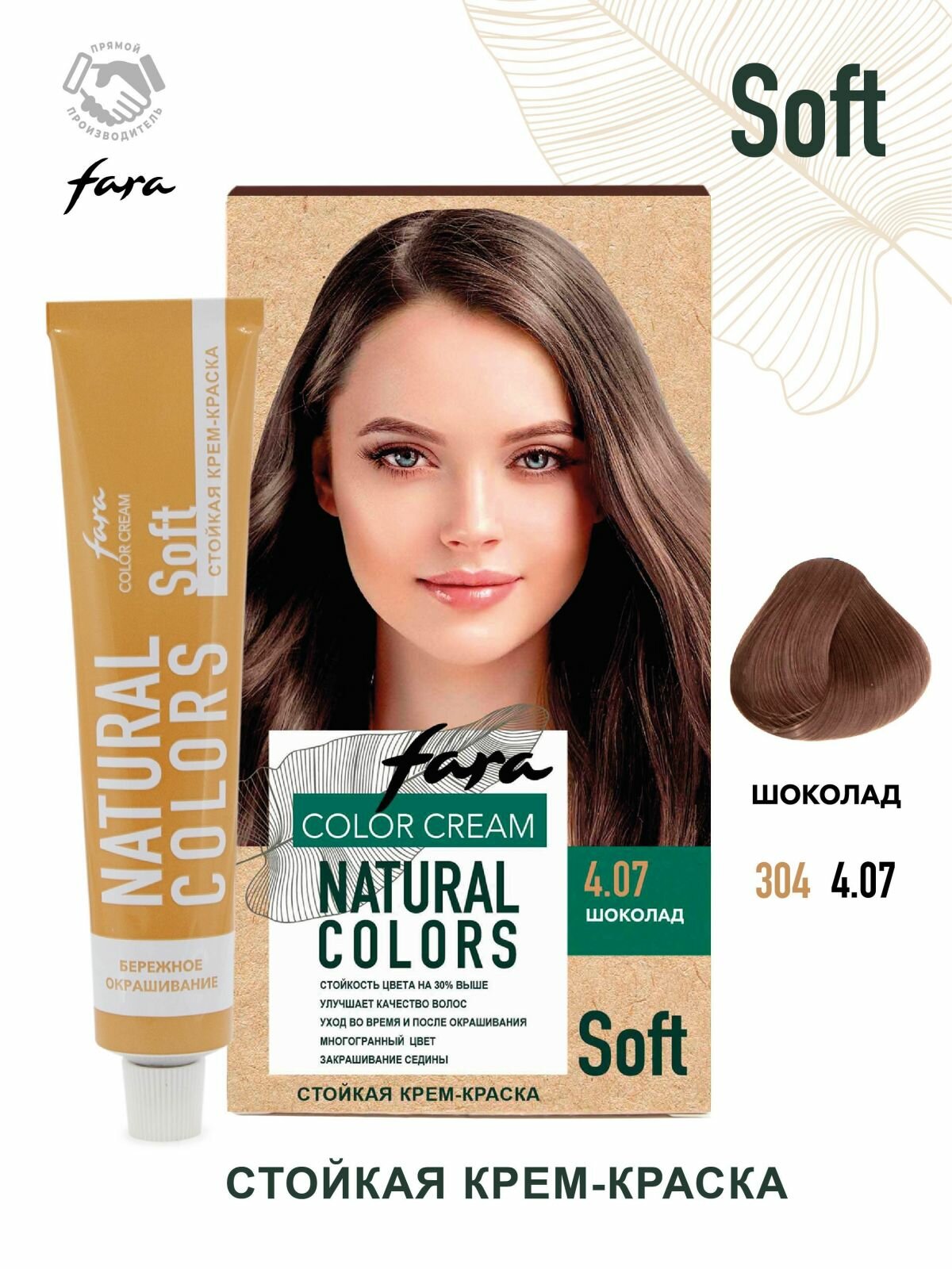 Купить Стойкая крем-краска для волос Fara Natural Colors Soft тон 304 Шоколад 4.07