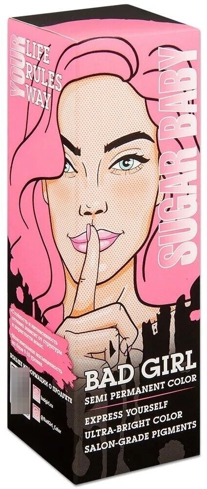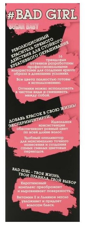 Прямой краситель для окрашивания волос BAD GIRL пастельный розовый sugar baby 150 мл