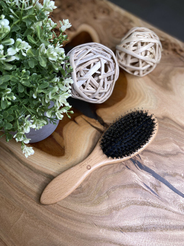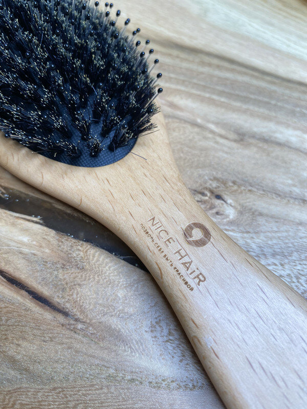 Расческа NICE HAIR массажная, деревянная, антистатик, с натуральной щетиной кабана, квадратная, бежевый