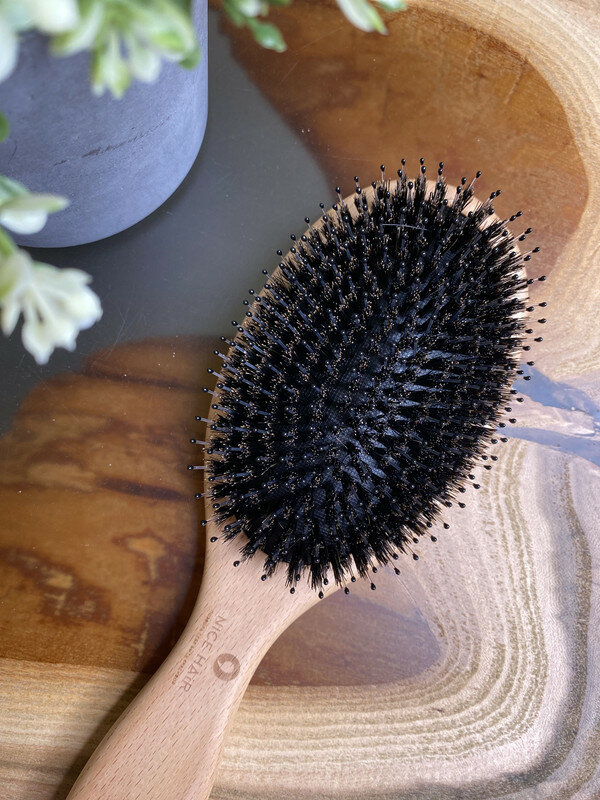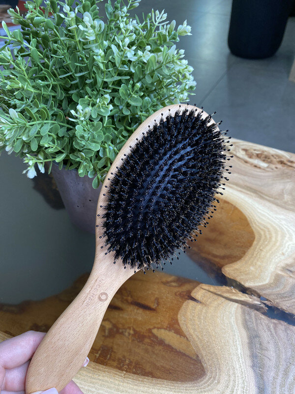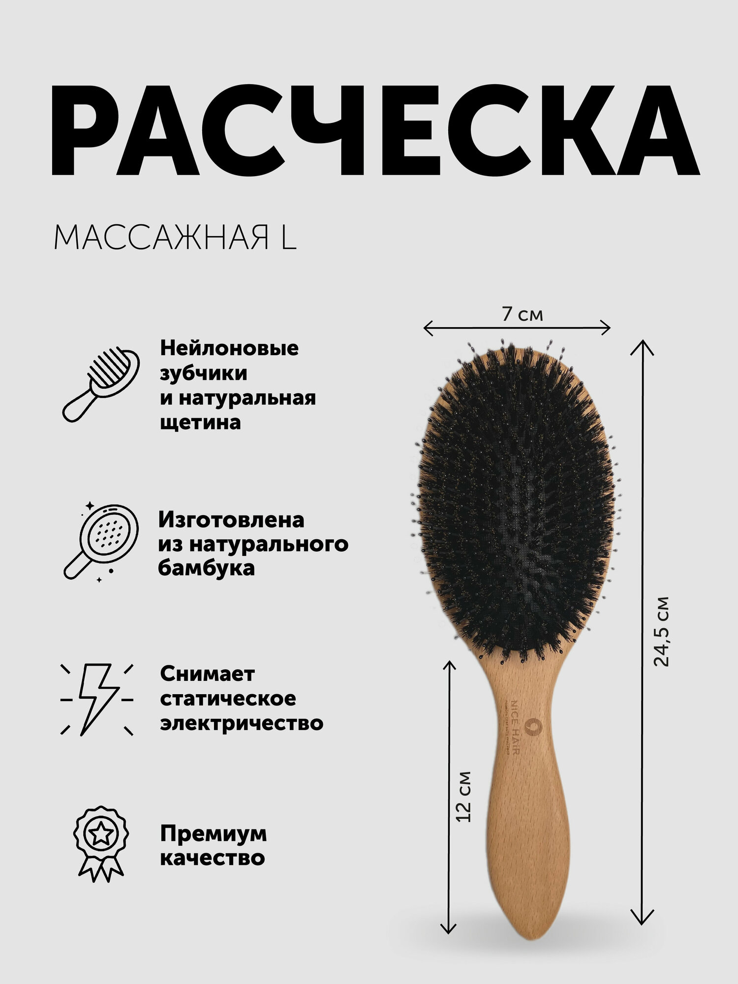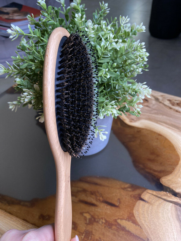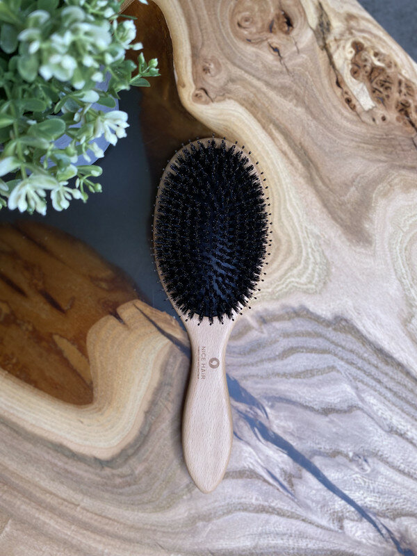 Расческа NICE HAIR массажная, деревянная, антистатик, с натуральной щетиной кабана, квадратная, бежевый