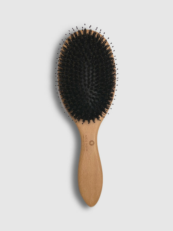 Купить Расческа NICE HAIR массажная, деревянная, антистатик с натуральной щетиной кабана, круглая, бежевый, 80 мм