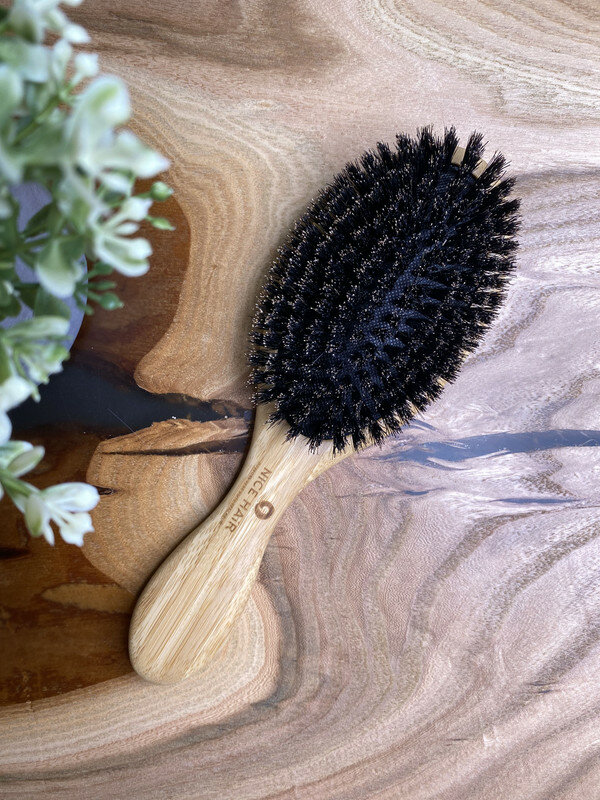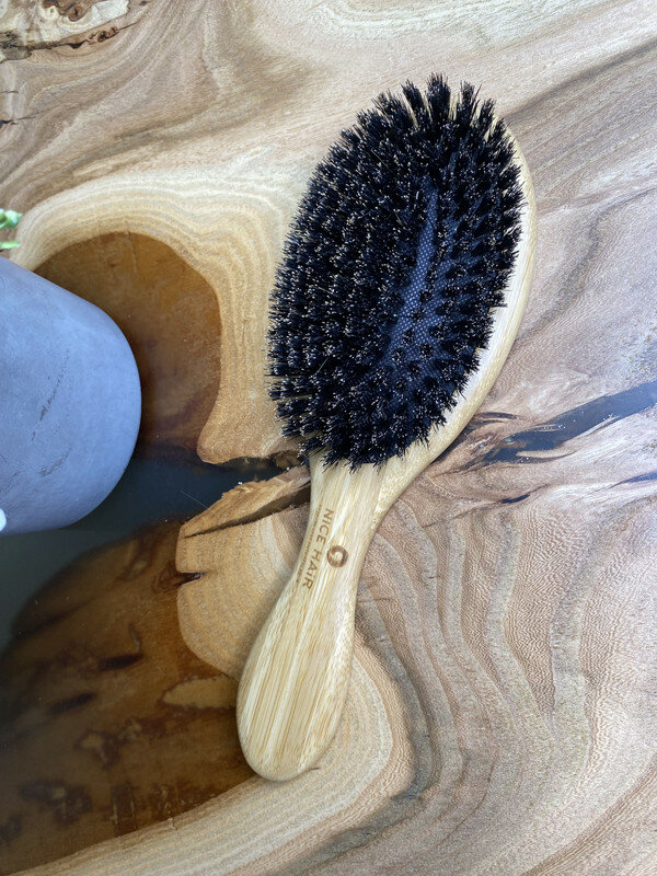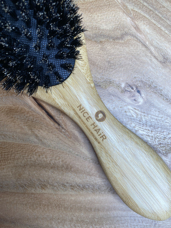Расческа NICE HAIR массажная, деревянная, антистатик, круглая, с натуральной щетиной кабана, бежевый, 70 мм