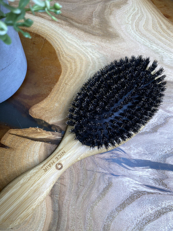 Расческа NICE HAIR массажная, деревянная, антистатик, с натуральной щетиной кабана, квадратная, бежевый