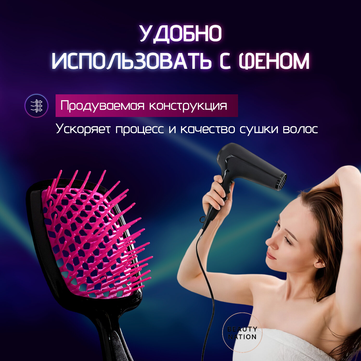 Массажная продувная расческа для распутывания волос Черно-Розовая интересное: