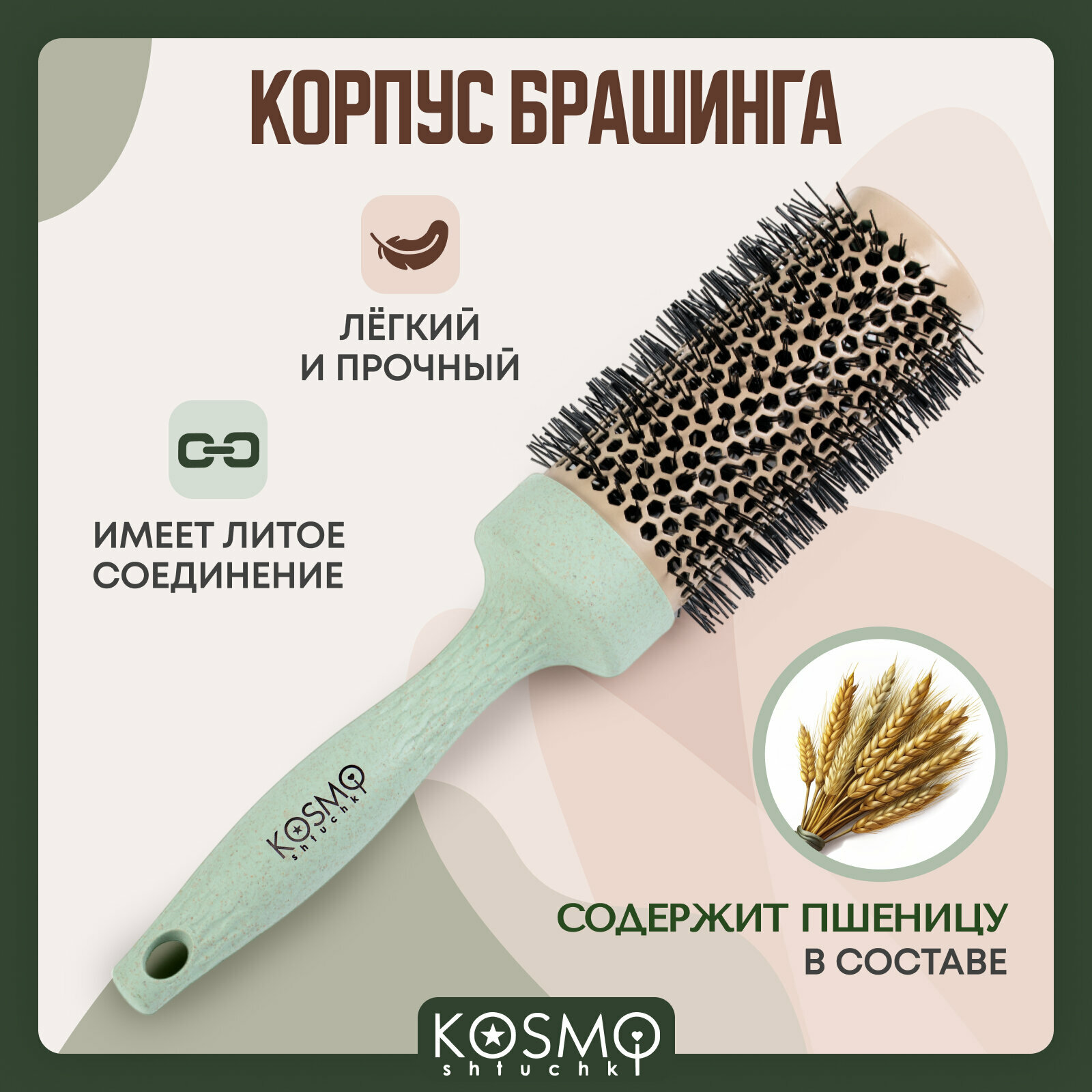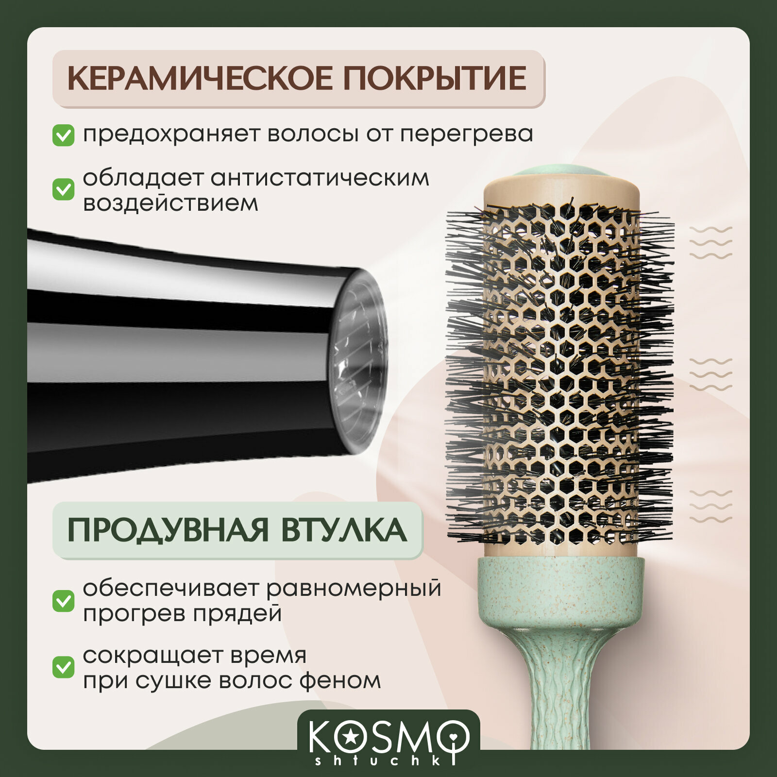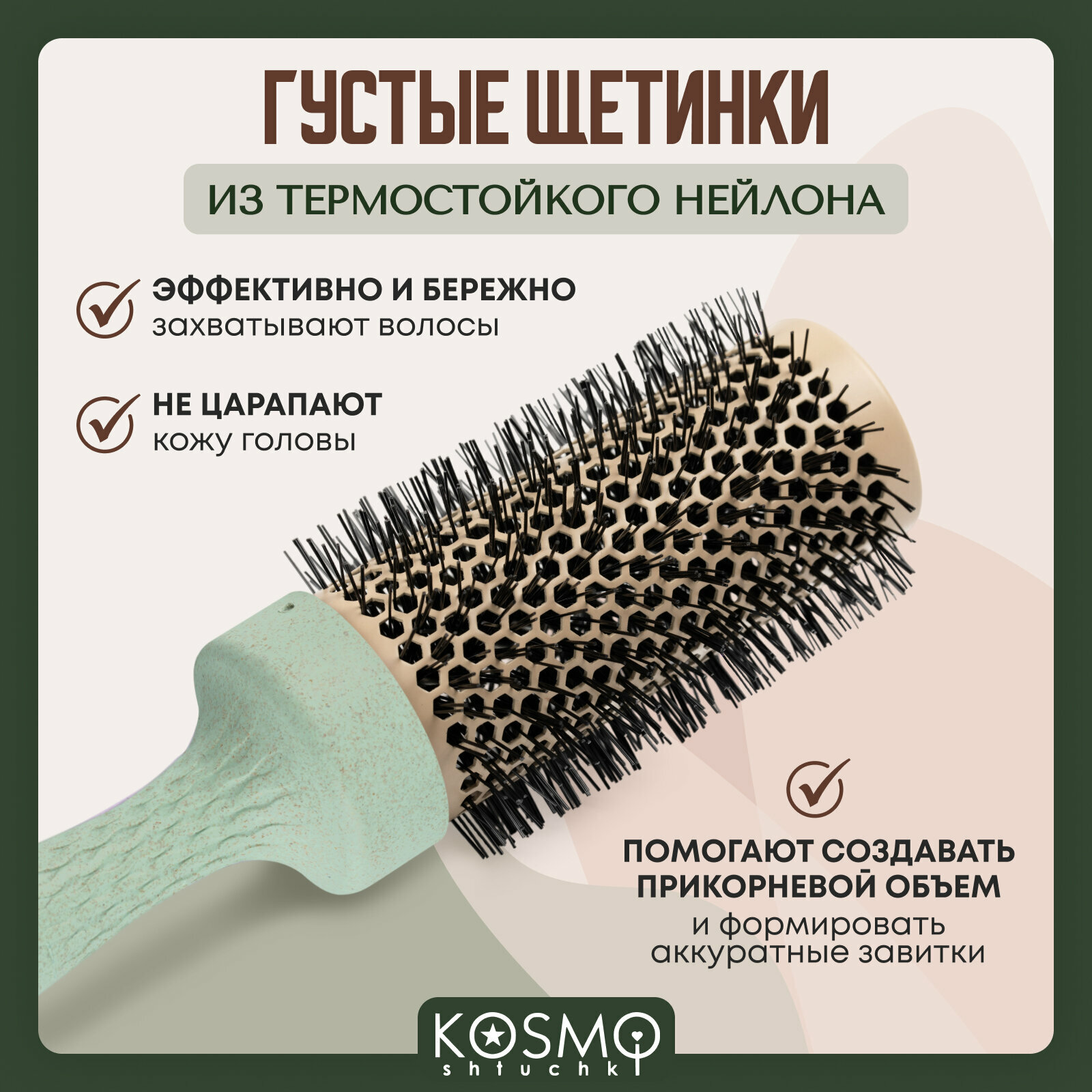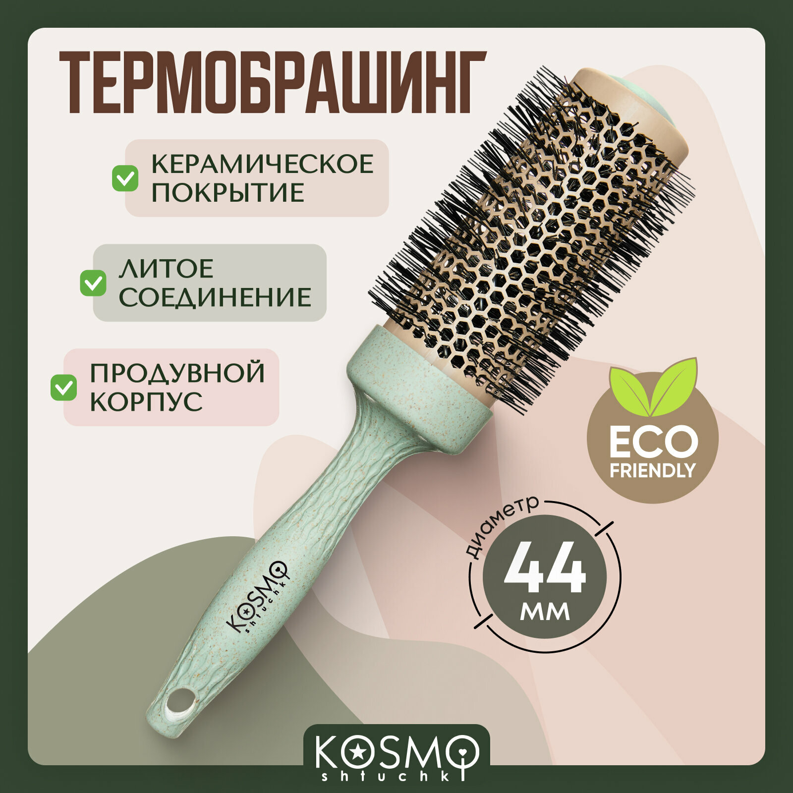 KosmoShtuchki Термобрашинг с керамическим покрытием 44 мм БИО (зеленый), брашинг для укладки волос интересное: